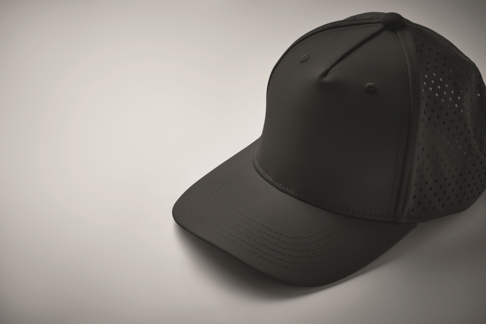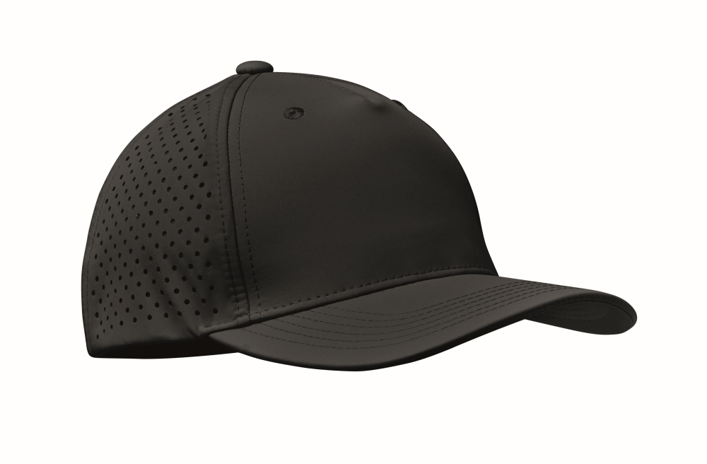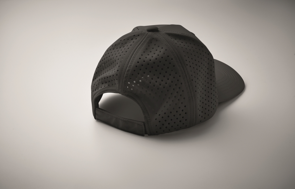 Pětipanelová polyesterová funkční čepice s nastavitelným zapínáním na suchý zip a laserem perforovanými otvory a 2 prošitými očky v odpovídající barvě. Vložka je rychleschnoucí, odpuzuje pot a vodu. 130 gr/m2 Rozměry: 21 x 16 x 11 cm