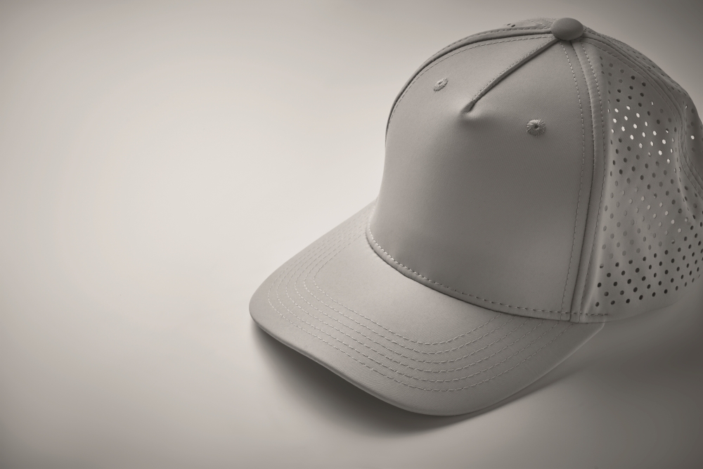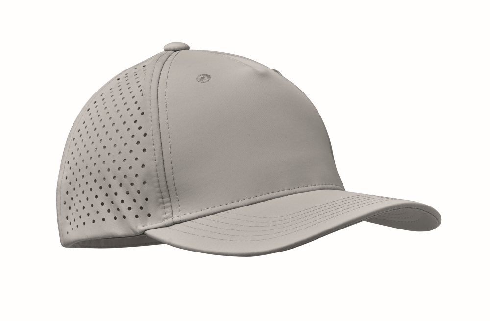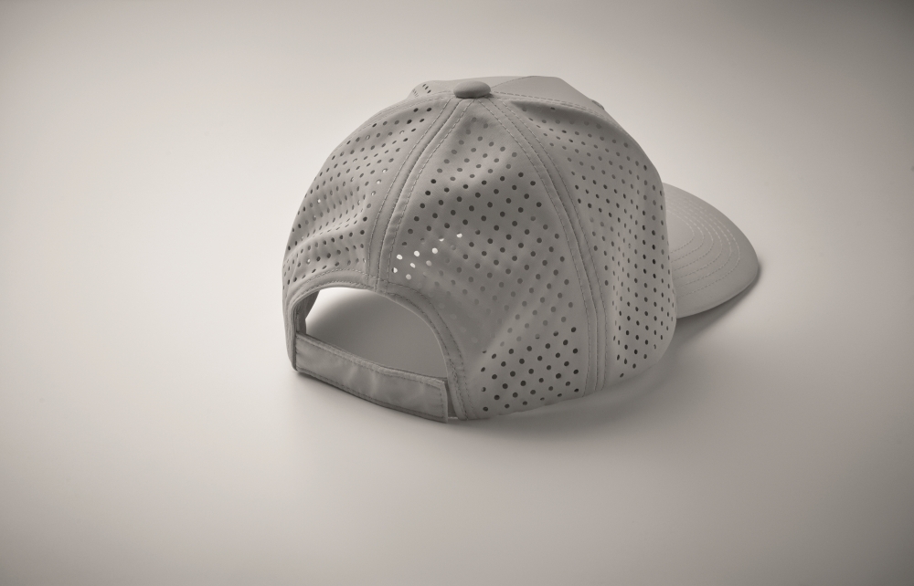 Pětipanelová polyesterová funkční čepice s nastavitelným zapínáním na suchý zip a laserem perforovanými otvory a 2 prošitými očky v odpovídající barvě. Vložka je rychleschnoucí, odpuzuje pot a vodu. 130 gr/m2 Rozměry: 21 x 16 x 11 cm