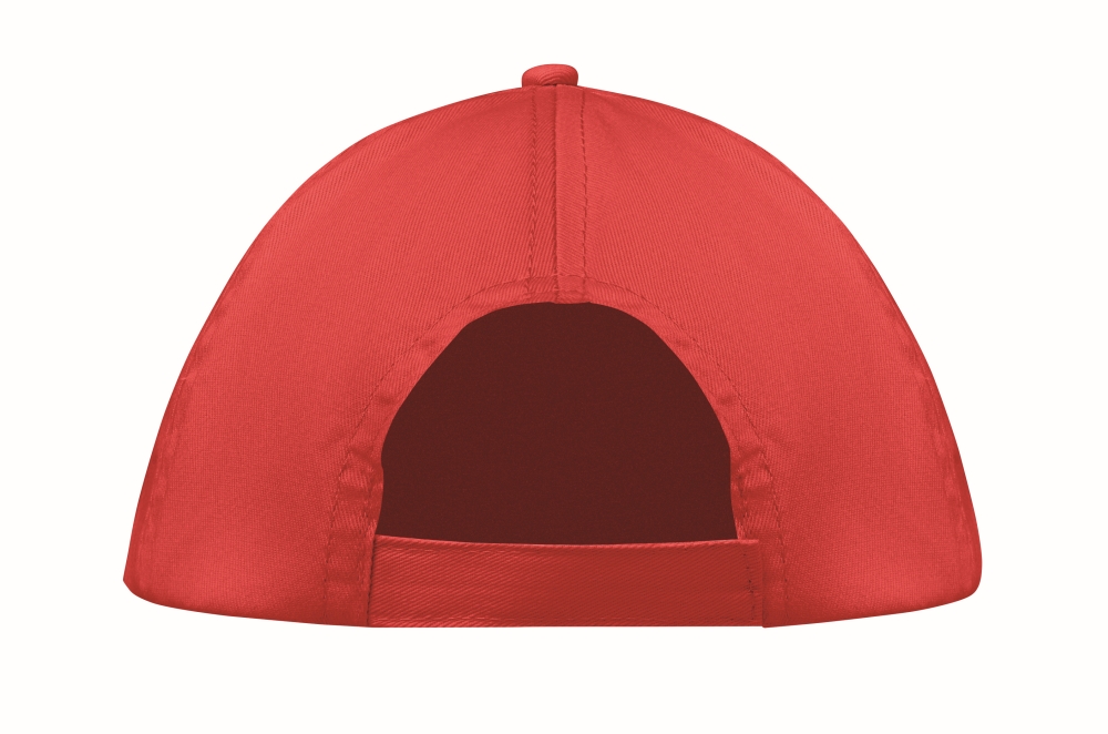 Pětipanelová baseballová čepice z bavlněného kepru 150 gr/m2 s nastavitelným zapínáním na suchý zip a 2 vyšívanými očky ve stejné barvě. Velikost 7 1/4. Rozměry: 25 x 16 x 15 cm