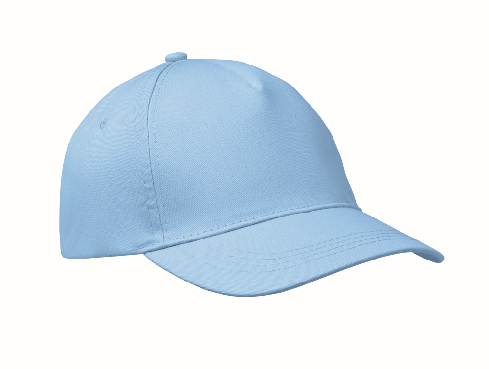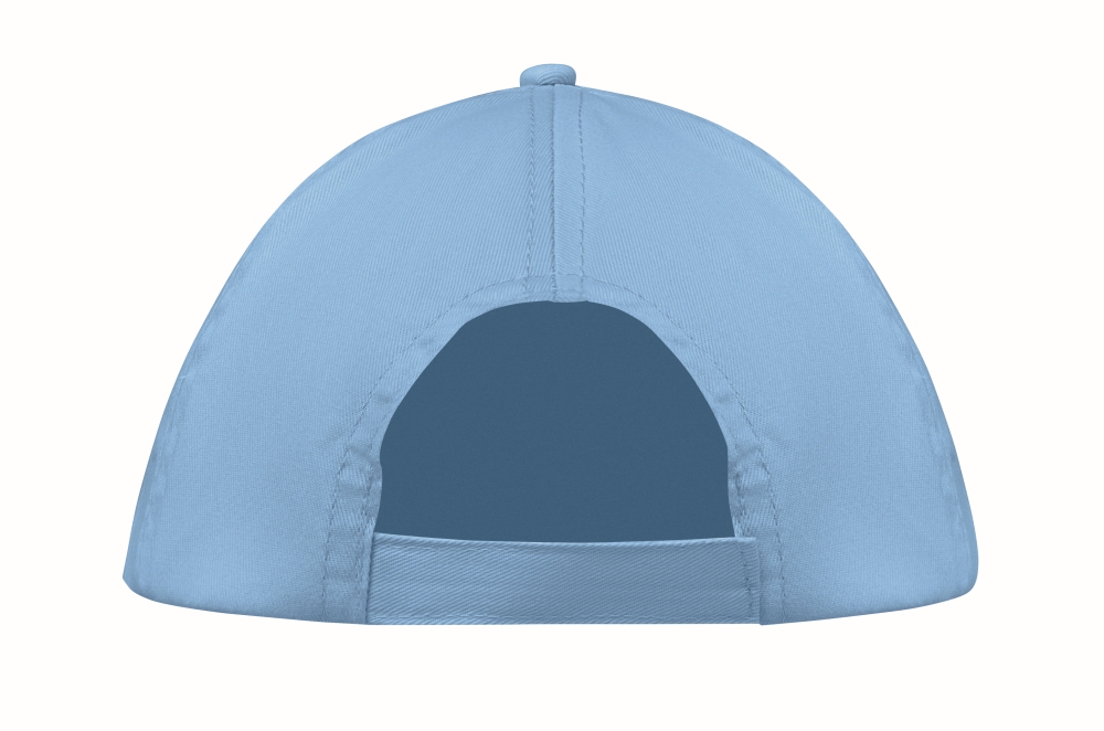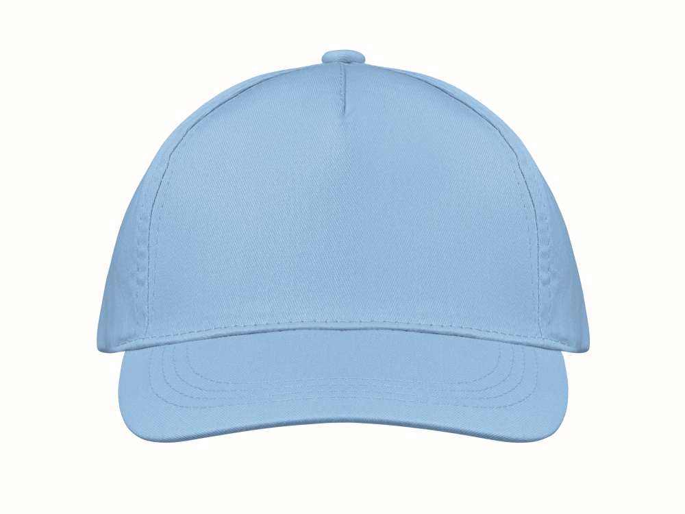 Pětipanelová baseballová čepice z bavlněného kepru 150 gr/m2 s nastavitelným zapínáním na suchý zip a 2 vyšívanými očky ve stejné barvě. Velikost 7 1/4. Rozměry: 25 x 16 x 15 cm