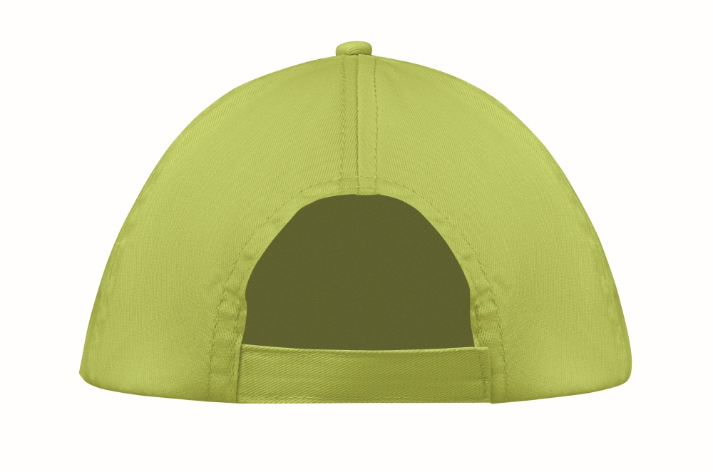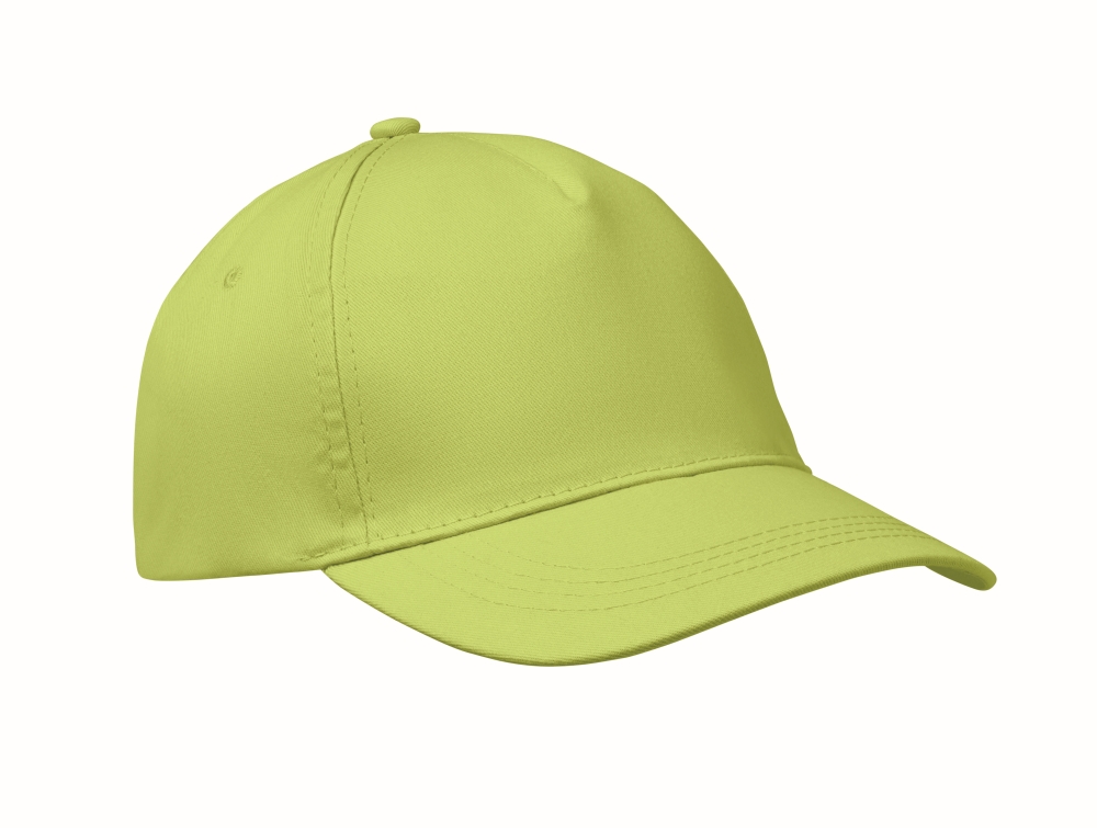 Pětipanelová baseballová čepice z bavlněného kepru 150 gr/m2 s nastavitelným zapínáním na suchý zip a 2 vyšívanými očky ve stejné barvě. Velikost 7 1/4. Rozměry: 25 x 16 x 15 cm