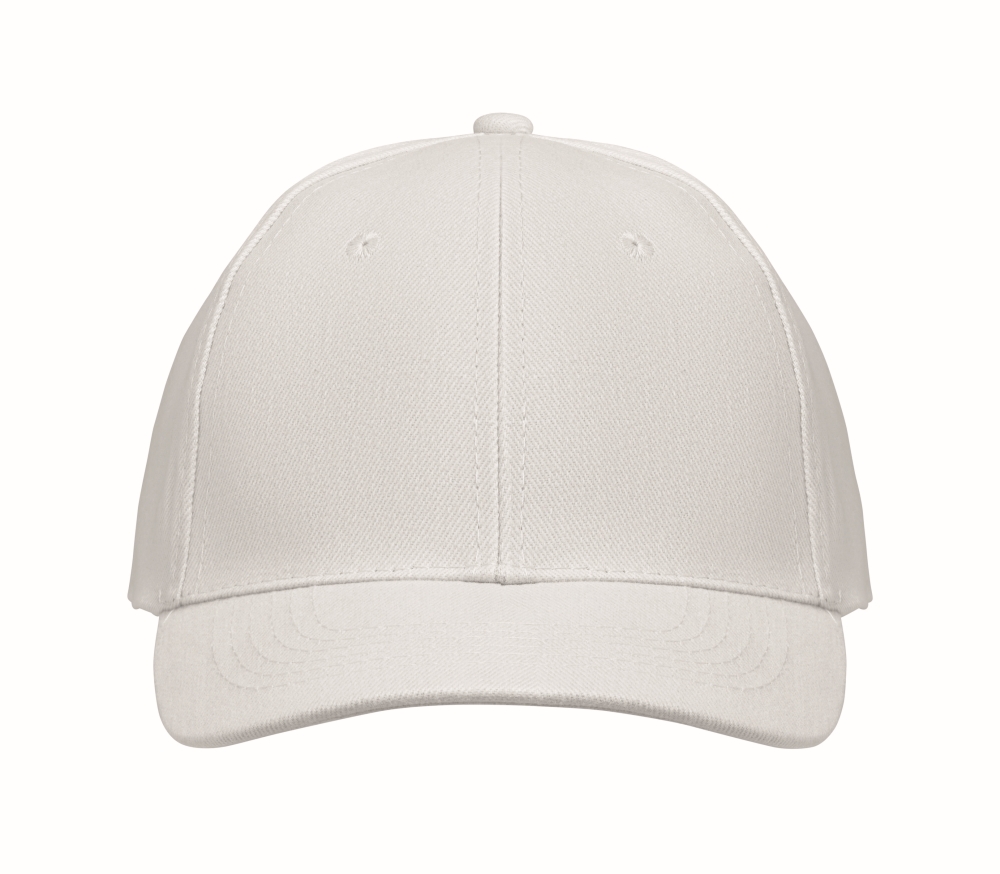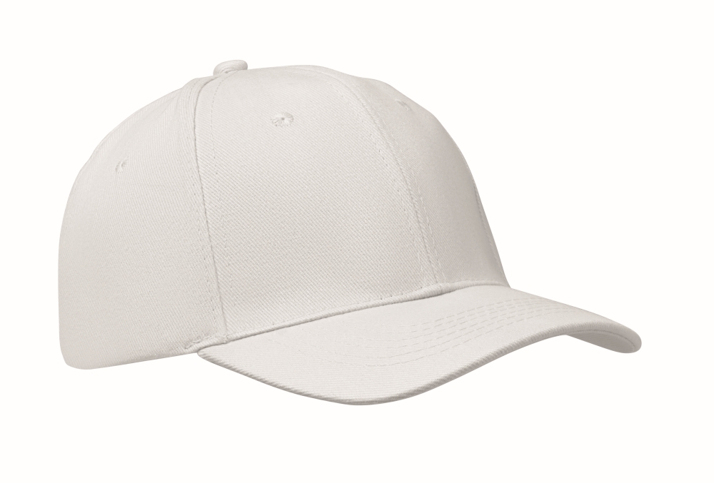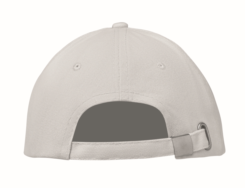 Šestipanelová baseballová čepice z broušené bavlny 260 gr/m2 se stříbrnou ocelovou sponou a 6 vyšívanými očky ve stejné barvě. Velikost 7 1/4. Rozměry: 21 x 17 x 11 cm