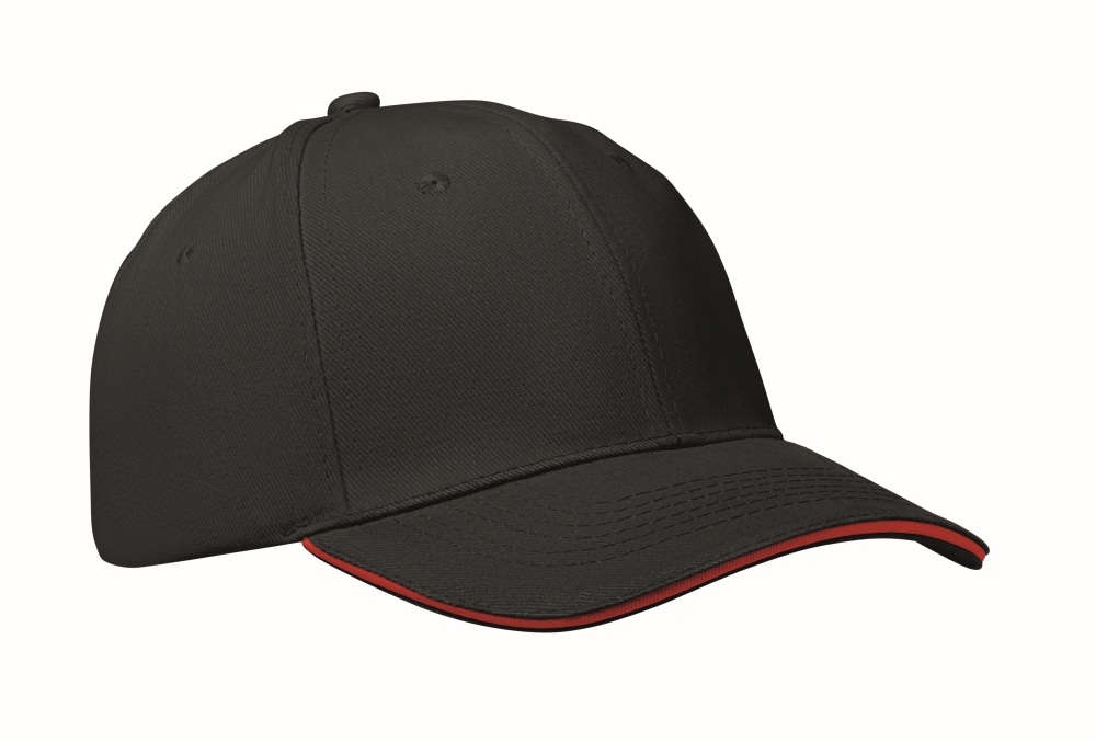 Šestipanelová baseballová kšiltovka, černá/červená - reklamní kšiltovky