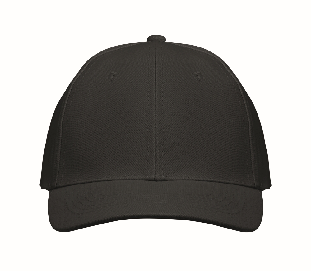 Šestipanelová baseballová čepice z broušené bavlny 260 gr/m2 se stříbrnou ocelovou sponou a 6 vyšívanými očky ve stejné barvě. Velikost 7 1/4. Rozměry: 21 x 17 x 11 cm