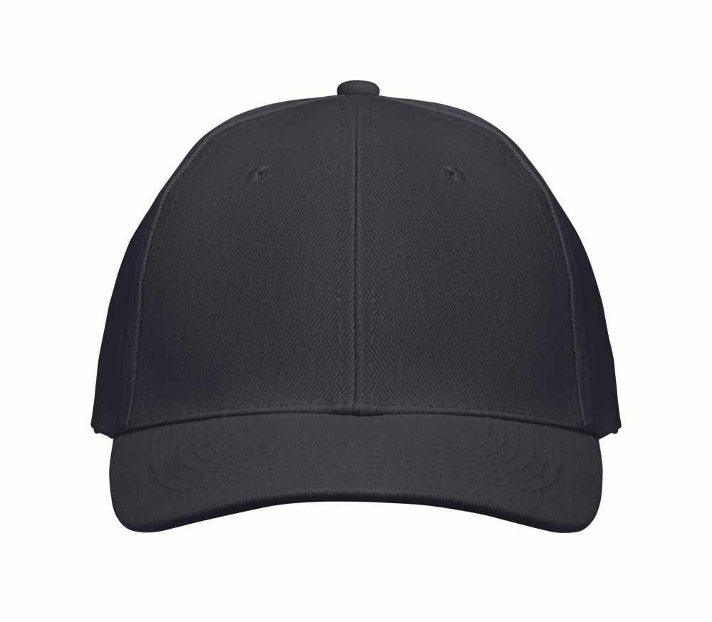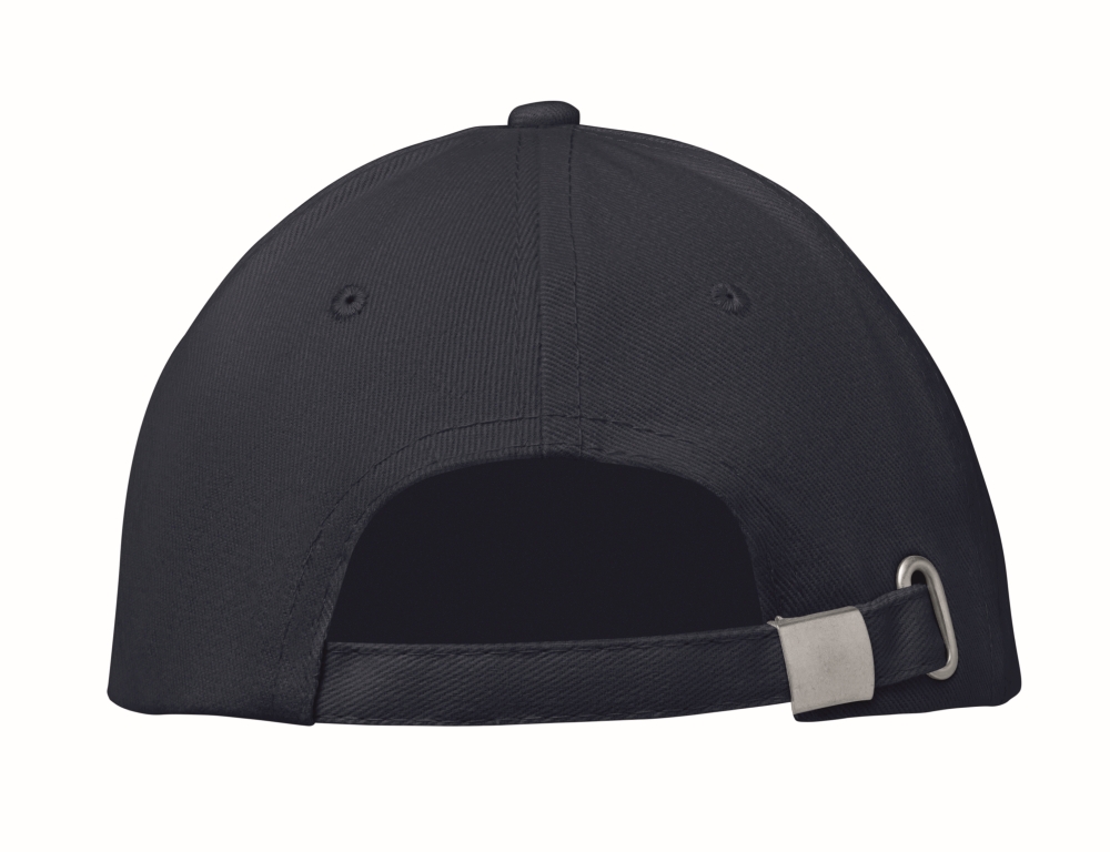 Šestipanelová baseballová čepice z broušené bavlny 260 gr/m2 se stříbrnou ocelovou sponou a 6 vyšívanými očky ve stejné barvě. Velikost 7 1/4. Rozměry: 21 x 17 x 11 cm