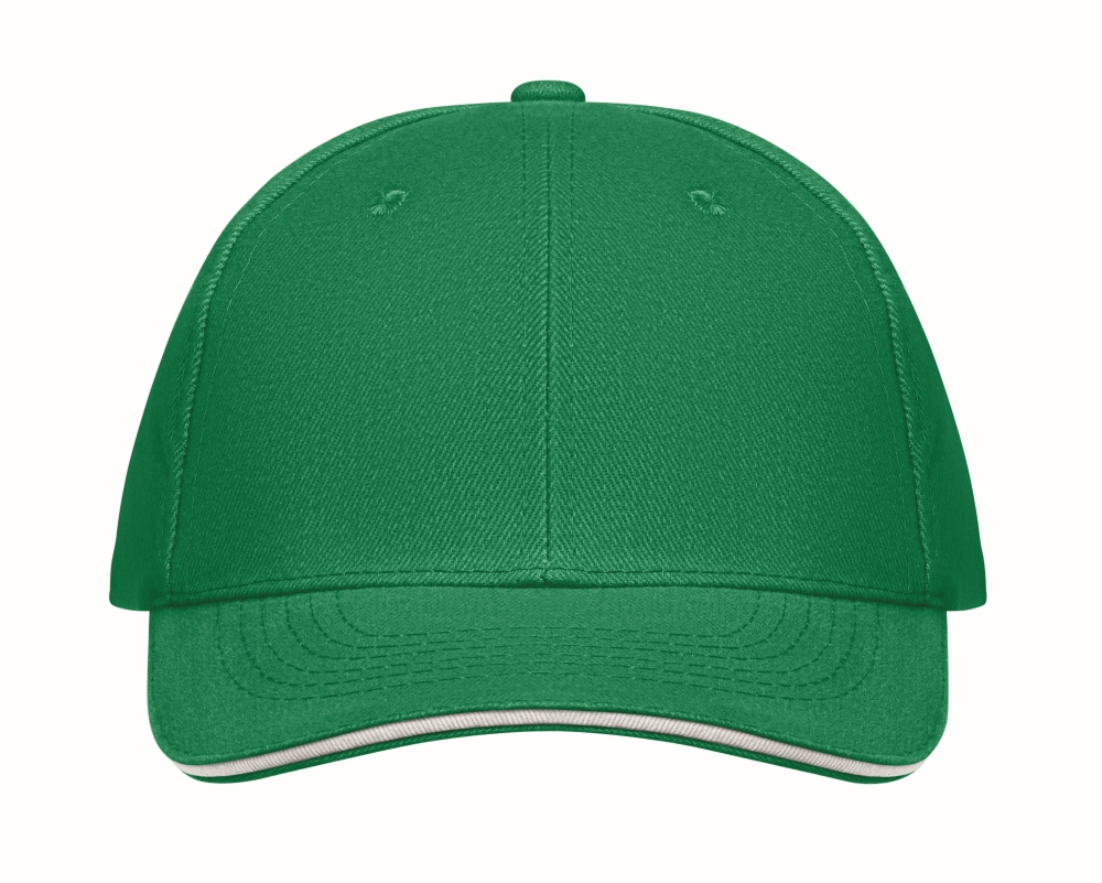 Šestipanelová baseballová čepice z broušené bavlny 260 gr/m2 se stříbrnou ocelovou sponou a 6 vyšívanými očky ve stejné barvě. Velikost 7 1/4. Rozměry: 21 x 17 x 11 cm