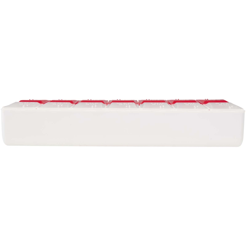 Zůstaňte organizovaní a důslední s tímto pouzdrem na multivitaminy, které je navrženo tak, aby vaše denní doplňky stravy byly v souladu s plánem. Obsahuje oddělené přihrádky pro ranní i odpolední dávky, od pondělí do neděle, abyste nikdy nevynechali dávku. Je kompaktní a odolné, ideální jak na cesty, tak na každodenní použití, což usnadňuje přenášení a ukládání vitamínů. Rozměry: 17,5 x 3 x 8,7 cm