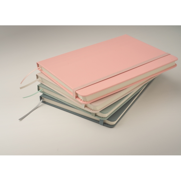 Poznámkový blok A5 s tvrdými PU deskami a 192 stranami (96 listů) recyklovaného papíru. Barevně stejný elastický pásek a záložka. FSC®-certified | FSC MIX CREDIT, P7.1, FSC-C213206 Rozměry: 21 x 14 x 1.6 cm