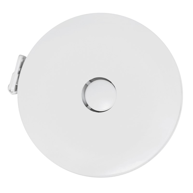 Kulatý svinovací metr. Rozměry 5x1,8 cm. Bílá barva.