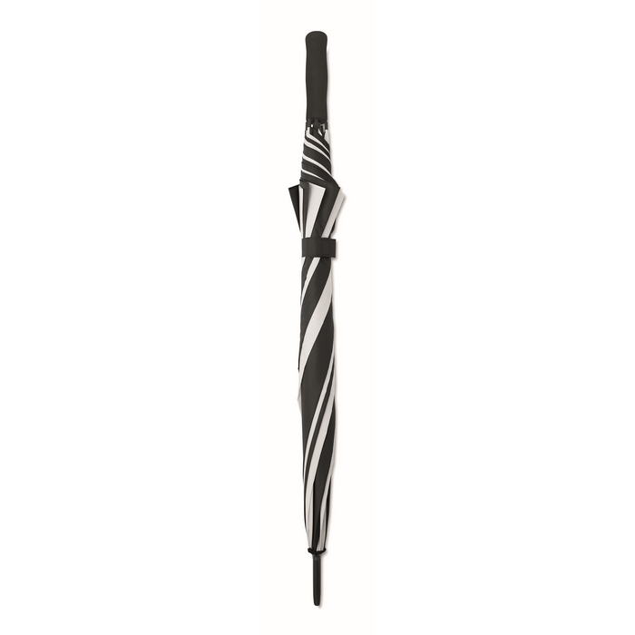 27 deštník z hedvábného PE s EVA rukojetí. Černý pokovaný rám a plastové černé konečky. Automatické otevírání. Rozměry: O116 x 94,3 cm
