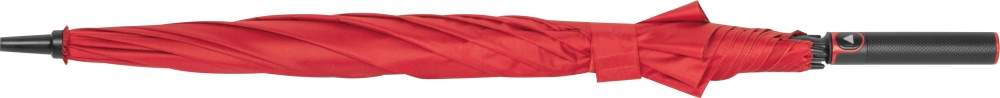 Klasický deštník s integrovanou kruhovou rukojetí, automatickým otvíráním, rámem a žebry ze sklolaminátu. Vyrobený z materiálu 190T pongee. Rozměry: o 120 x 93 cm