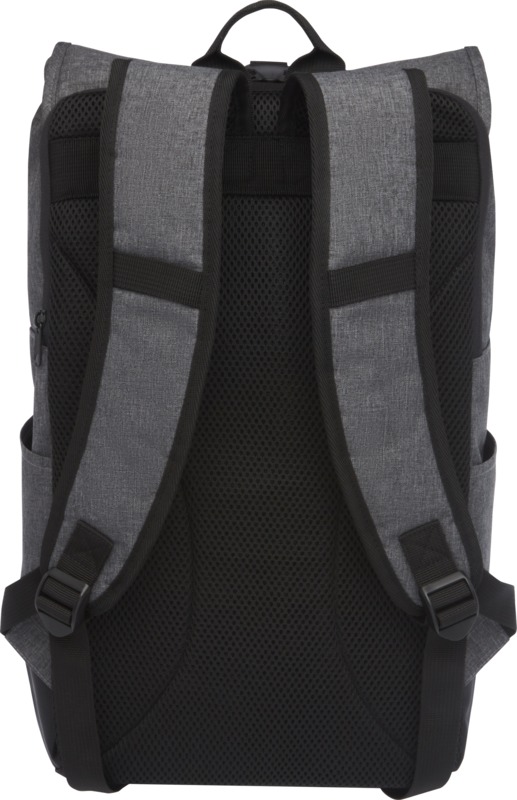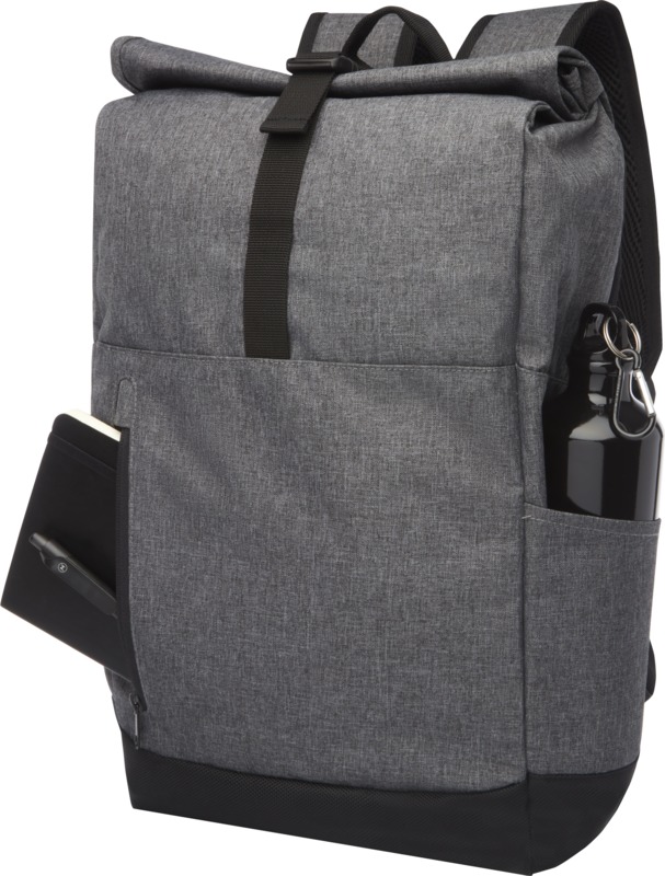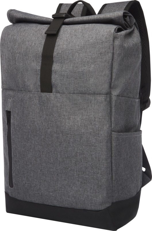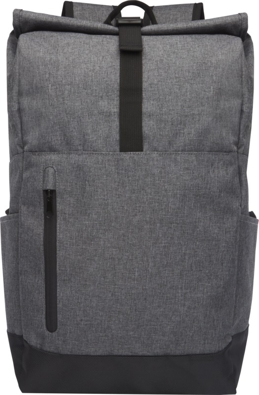 Batoh na 15,6" notebook s polstrovanou přihrádkou na notebook, polstrovanými nastavitelnými ramenními popruhy, hlavní kapsou na zip s rolovacím zavíráním v horní části, 2 uchy a přední kapsou na zip. Rozměry: 25 x 43 x 14 cm.