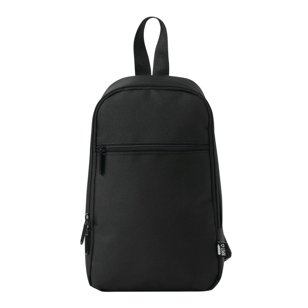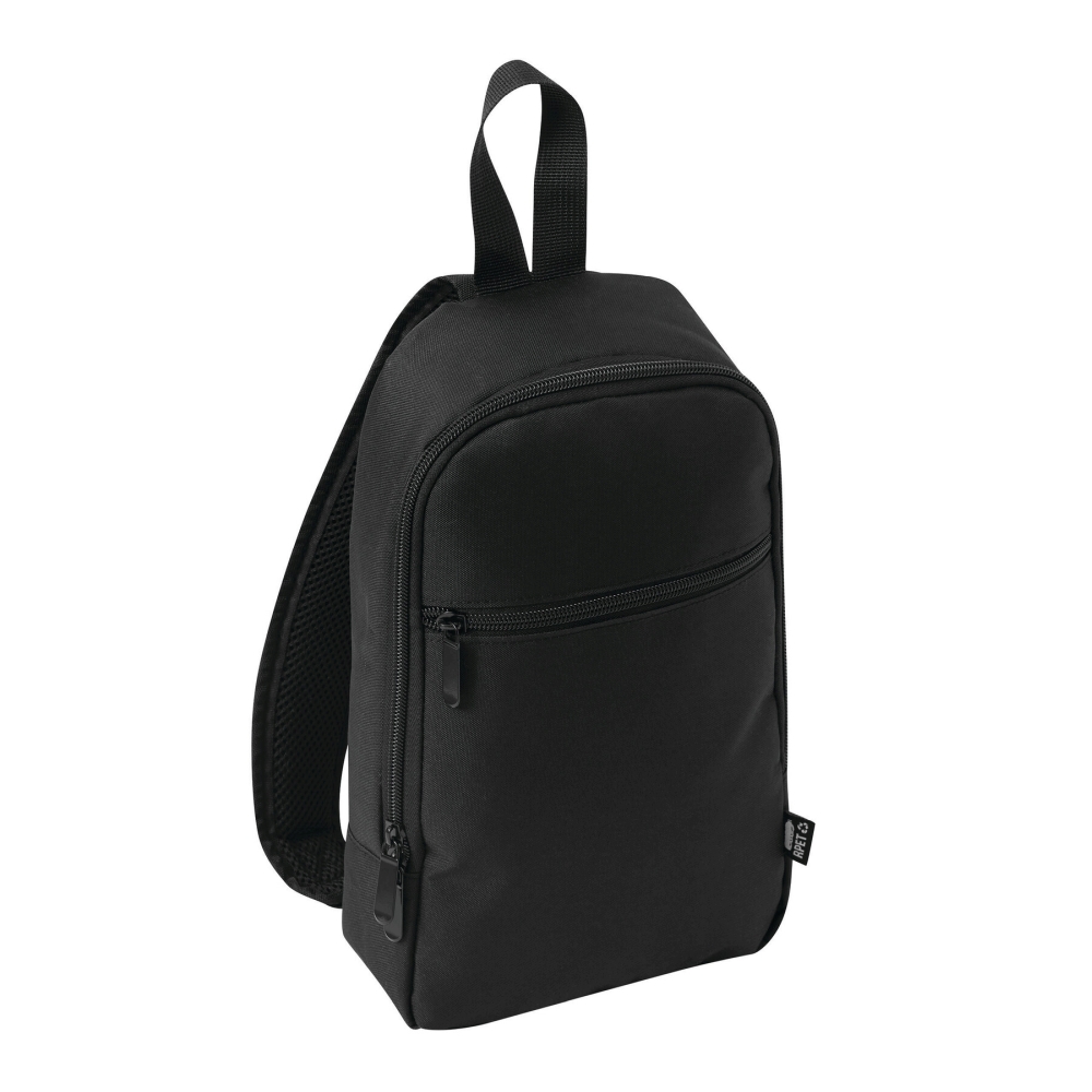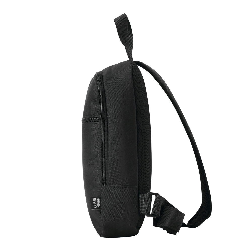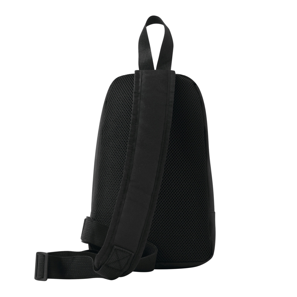 Batoh na jedno rameno z recyklovaného polyesteru, hlavní přihrádka na zip s vsuvnou kapsou, přední kapsa na zip, madlo, polstrovaný a nastavitelný ramenní popruh, polstrovaná zádová část. Rozměry: 18 x 7 x 29 cm