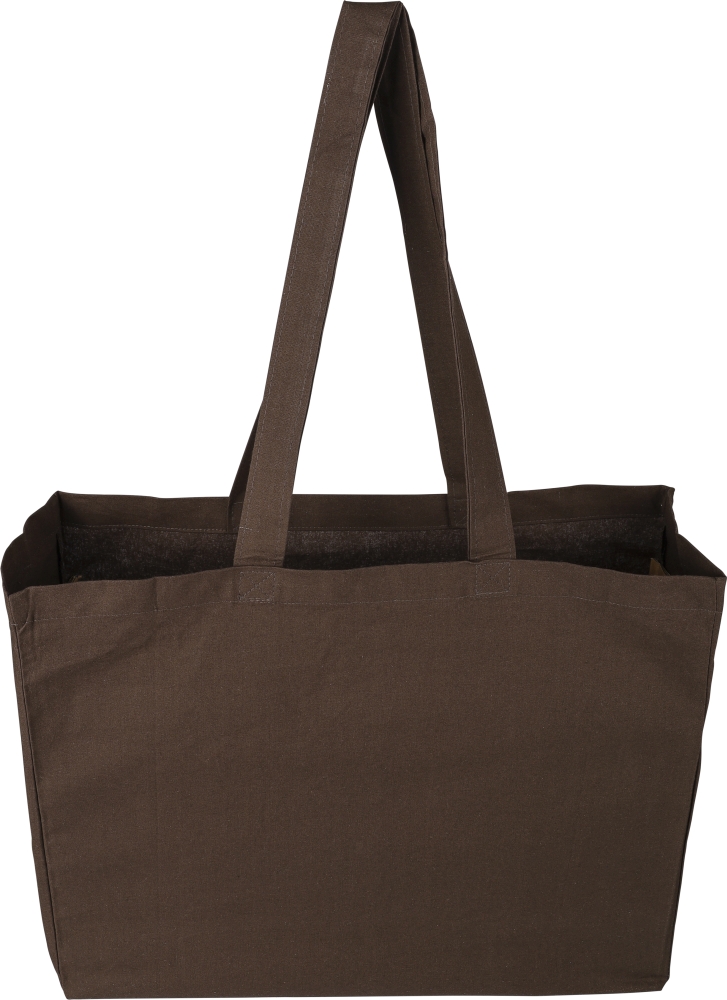 Nákupní taška z bavlny Oeko-Tex® (180 g/m2) ve tvaru D s 13cm klínkem. Rozměry 43 × 34 cm. Dlouhá ucha (délka 67 cm, šířka 3 cm). Včetně štítku Oeko-Tex®. Rozměry: 13 cm x 43 cm