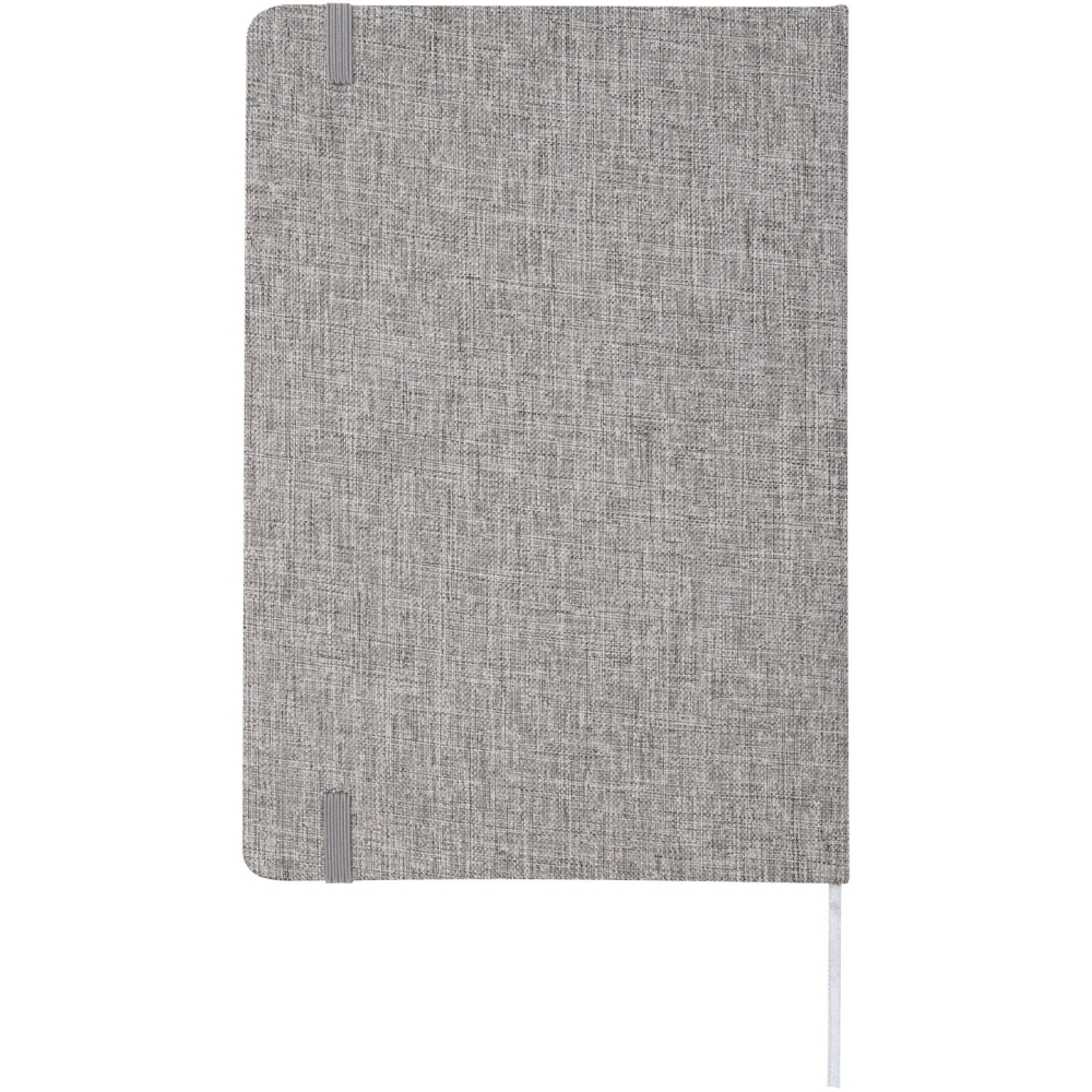 Zápisník formátu A5 s pevnou vazbou vyrobený z recyklované bavlny s 80 linkovanými listy papíru o gramáži 70 g/m2. Zápisník má elastické zapínání, stuhu a zaoblené rohy. Rozměry: 21,1 x 14,5 cm