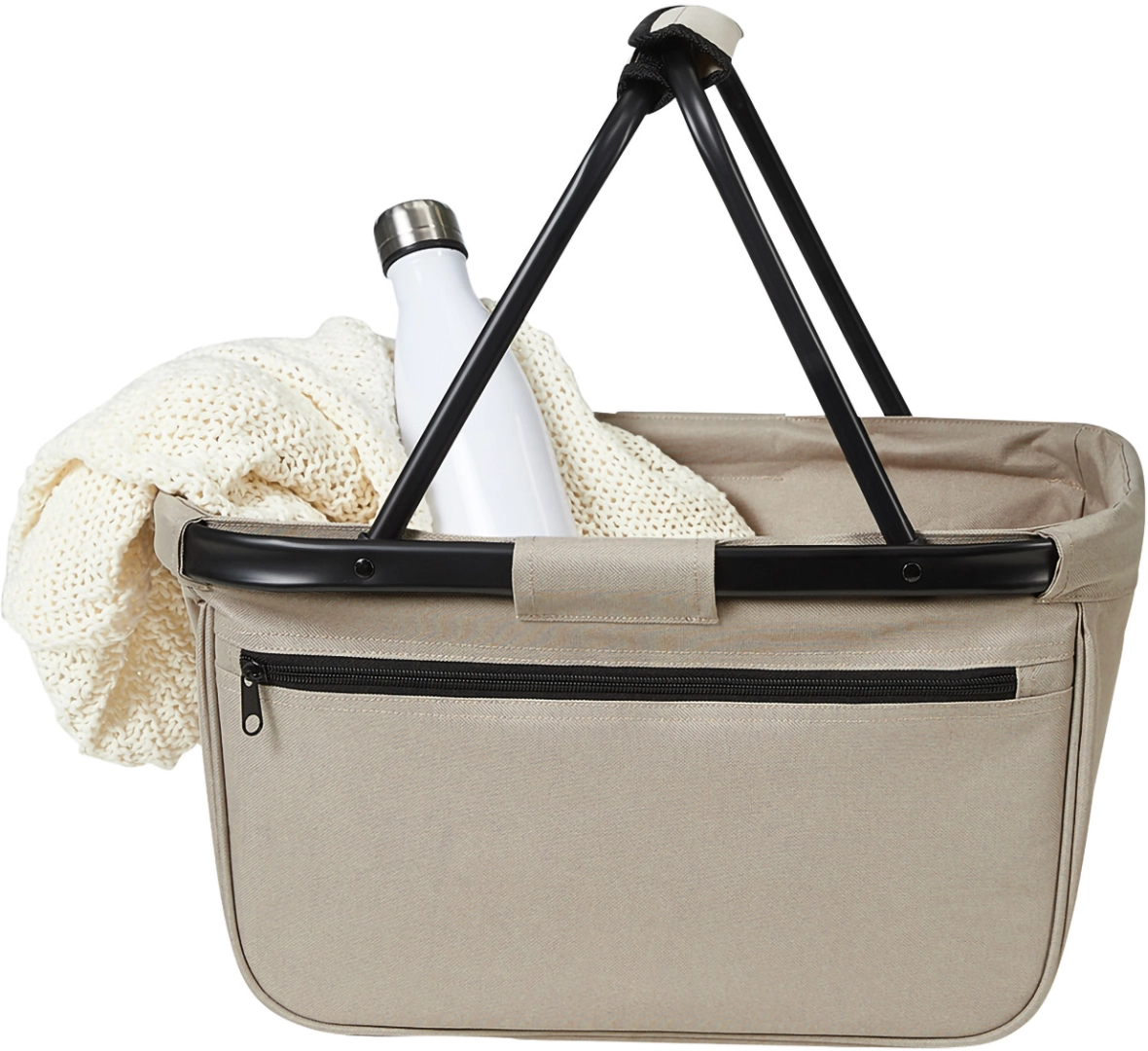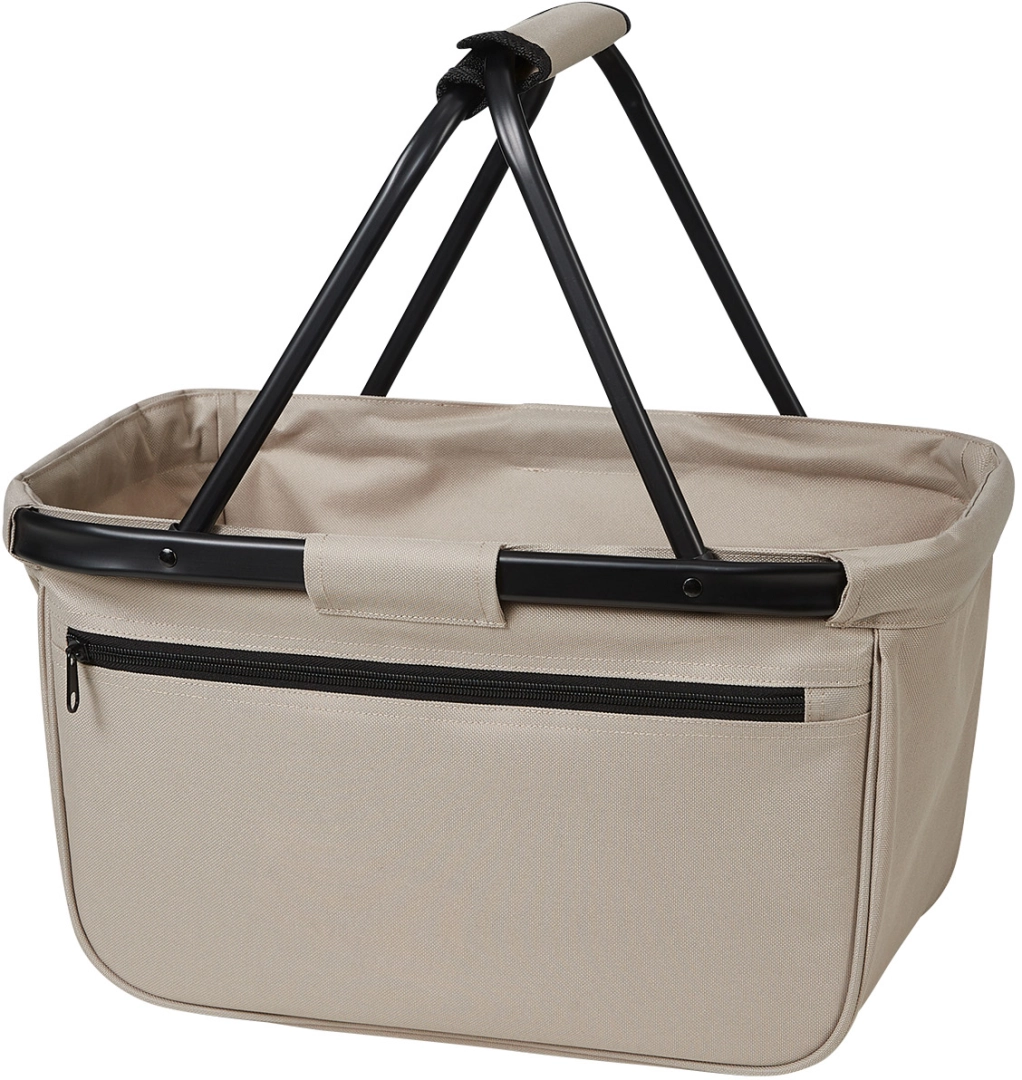 Skládací nákupní košík, s hliníkovým rámem, 600D polyester. Doporučená technologie tisku: sítotisk S2, magicprint. Maximální velikost tisku: 100 × 100 mm. Rozměry: 25 × 25 × 45 cm. Kartonové množství v ks: 10.