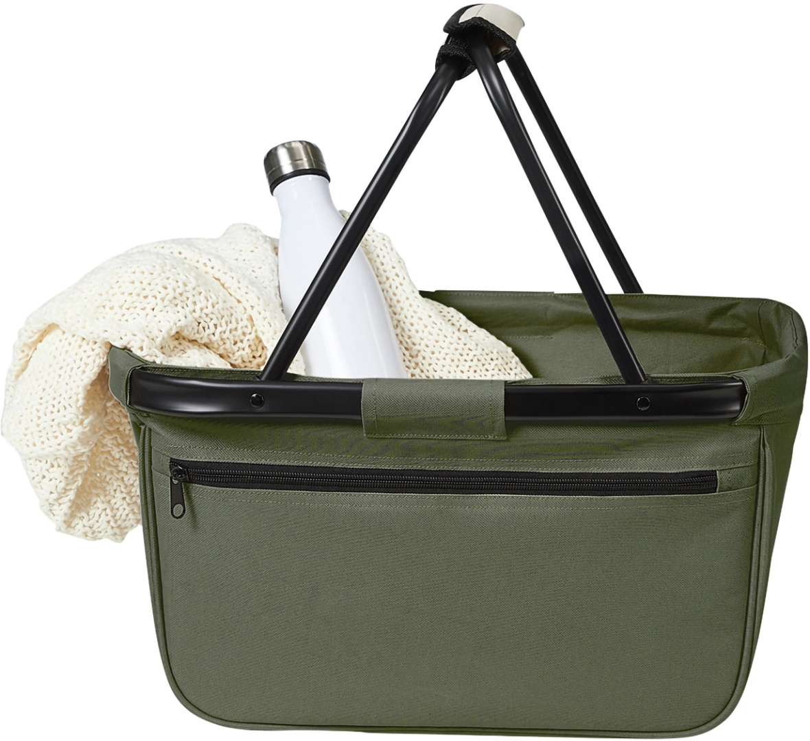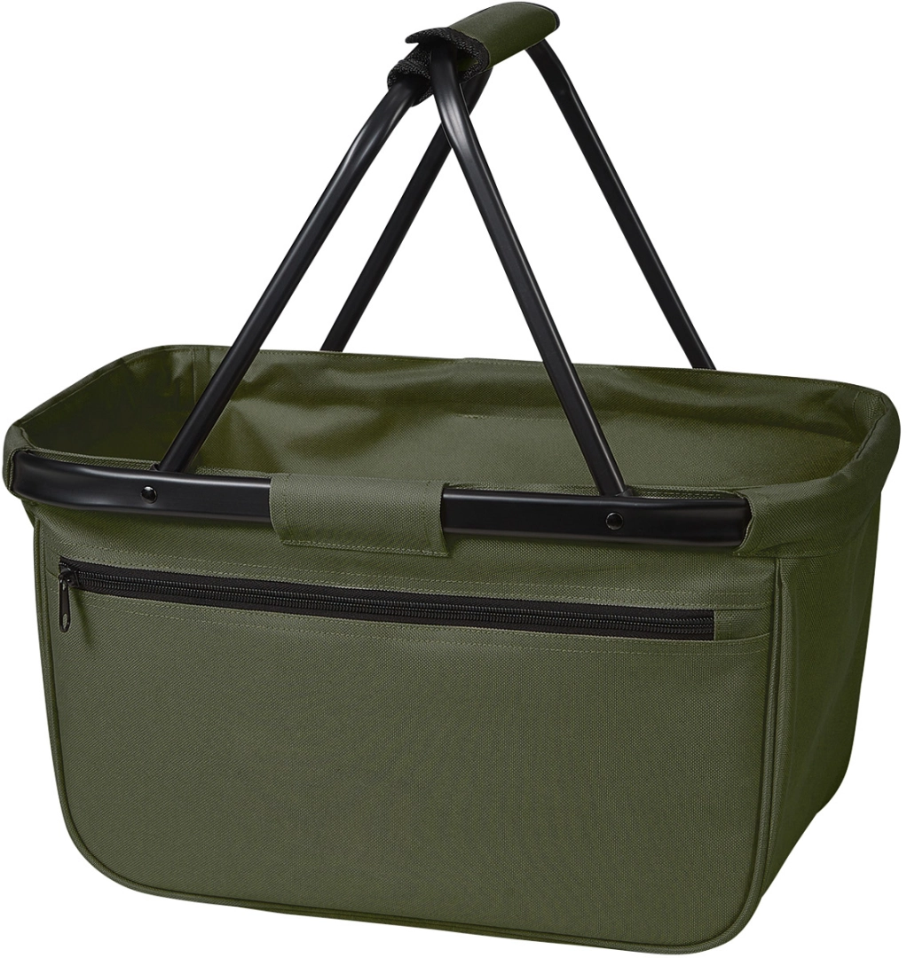 Skládací nákupní košík, s hliníkovým rámem, 600D polyester. Doporučená technologie tisku: sítotisk S2, magicprint. Maximální velikost tisku: 100 × 100 mm. Rozměry: 25 × 25 × 45 cm. Kartonové množství v ks: 10.