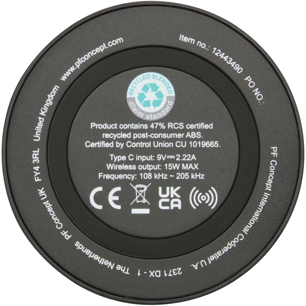 Bezdrátová nabíjecí podložka o výkonu 15 W z recyklovaného plastu, černá