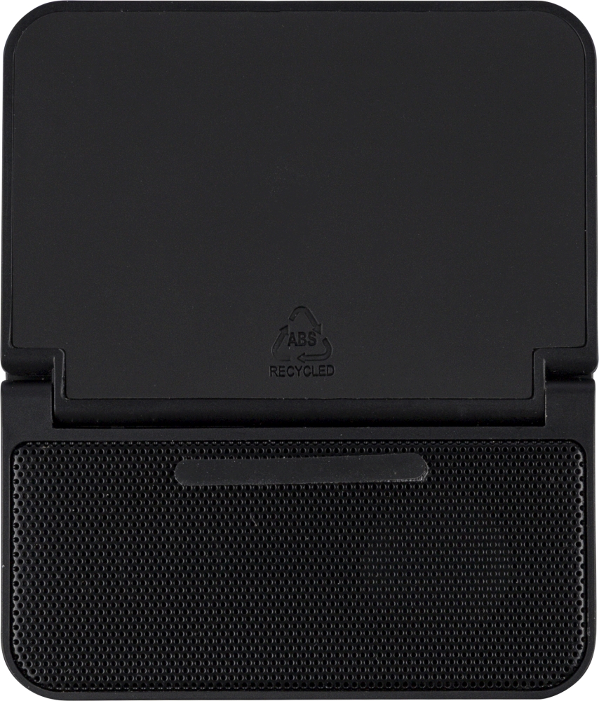 Recyklovaná ABS kostka 3 v 1 s 15W bezdrátovou nabíječkou, 5W reproduktorem a držákem na telefon. Vybavena bezdrátovou technologií 5.4, baterií 1200 mAh, kovovou síťovinou a vrchní deskou z recyklovaného PU. Recyklované logo. Baleno v hnědé krabičce. Rozměry: 3 cm x 11,2 cm