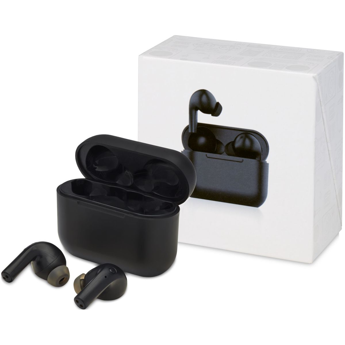 Sluchátka True Wireless s automatickým párováním představují upgradovanou verzi s vylepšenou kvalitou zvuku a rozměry a bezdrátovým nabíjením baterie. Jsou vybaveny funkcí Bluetooth® 5.1, automatickým párováním, automatickým zapnutím, integrovaným ovládáním hudby a dvojitým mikrofonem pro ovládání handsfree. Jakmile sluchátka vyjmete z pouzdra, zapnou se a automaticky se navzájem synchronizují, takže už se nikdy nemusíte obtěžovat se synchronizací! Pouzdro slouží i jako powerbanka pro sluchátka a lze ho nabíjet pomocí dodaného kabelu USB-C. Při plném nabití 400mAh baterie pouzdra můžete sluchátka nabít z 0 na 100 % až třikrát. S více než 6 hodinami přehrávání při maximální hlasitosti na jedno nabití jsou tak nepostradatelným doplňkem na cesty. Díky ergonomickému designu se sluchátka udrží na místě i při pohybu. Nabití sluchátek z 0 na 100 % trvá 1,5 hodiny. Pouzdro se nabije za méně než 1,5 hodiny. Produkt podporuje technologie Siri a Google Assistant. Pracovní dosah Bluetooth® činí 10 metrů. Baleno v prémiové dárkové krabičce. Rozměry: 7,36 x 8,54 x 3,97 cm.