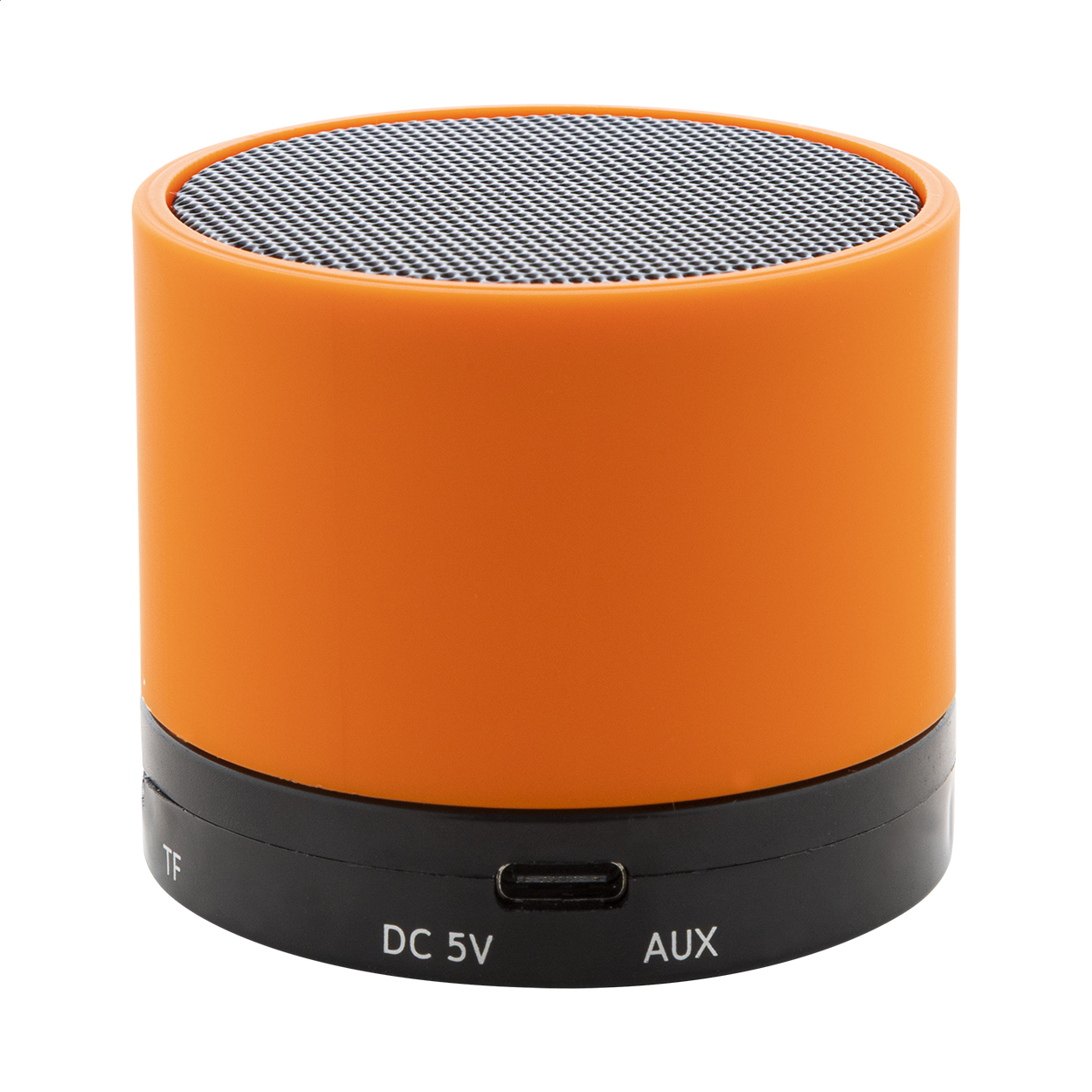 Bezdrátový reproduktor z recyklovaného ABS v pogumovaném pouzdře s kovovou síťovinou a dobíjecí baterií (300 mAh). S funkcí handsfree hovorů a přehrávání MP3 z micro SD karty. Včetně nabíjecího kabelu USB. Rozměry: o6×5 cm.