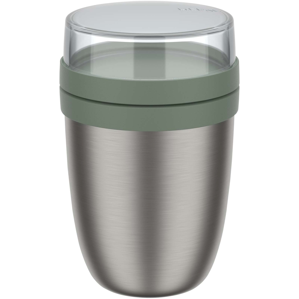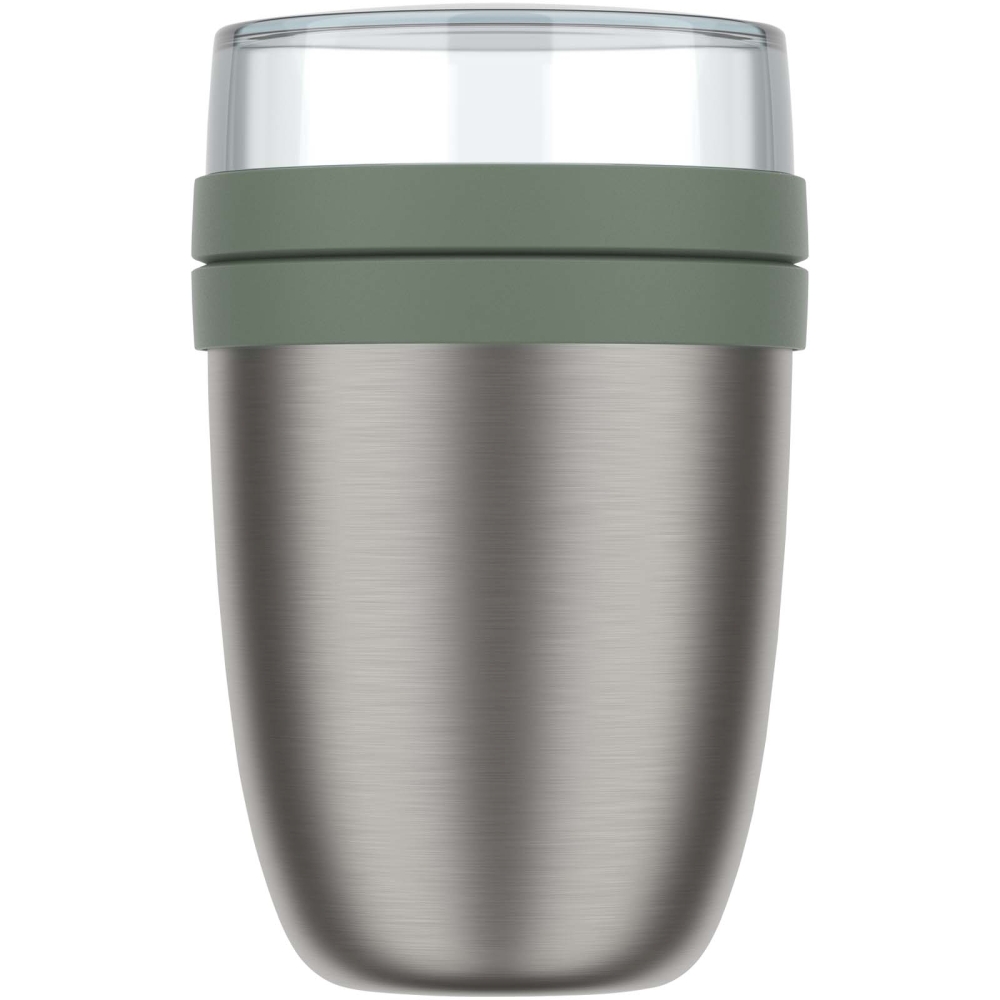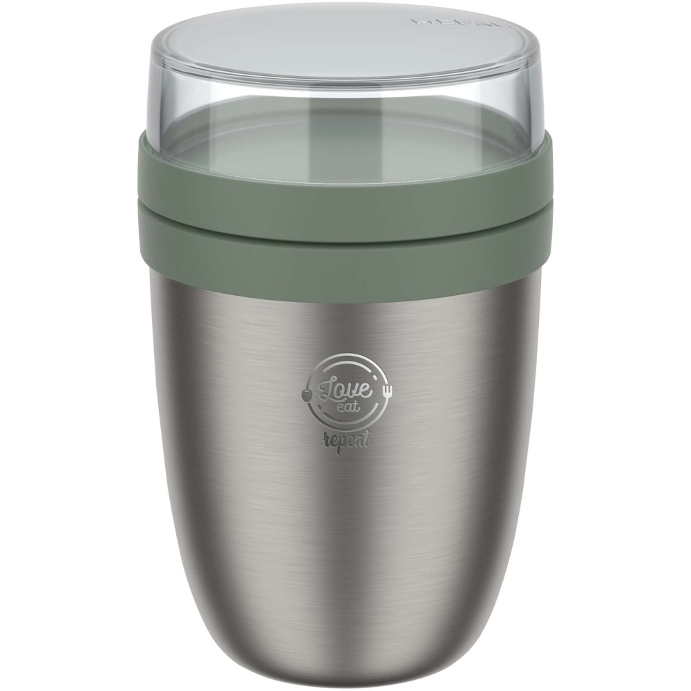 Tepelně izolovaný box na jídlo obsahující dvě různé přihrádky, díky kterým můžete uložit různé ingredience odděleně. Obě nádoby mají samostatné víko, aby se ingredience nesmíchaly. Udrží jídlo teplé 6–8 hodin a studené 12 hodin. Objem horní průhledné nádoby je 200 ml. Objem spodní nádoby je 500 ml. Vyrobeno z odolného materiálu. Vnější strana boxu zůstává chladná a suchá. Doporučujeme mýt ručně. Plastové části víka lze mýt v myčce na nádobí. Rozměry: 10,7 x 15,1 x 10,7 cm