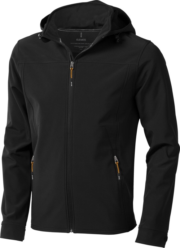 Pánská softshellová bunda na zip s odnímatelnou kapucí, vodě a větru odolná, 2 kapsy na zip, nastavitelné rukávy se suchým zipem. 90% polyester, 10% elastan, švy 100% polyester micro fleece, 300 g/m2.