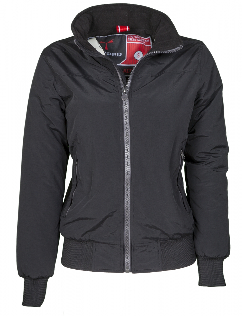 Dámská bunda se skrytým plastovým zipem s kovovým jezdcem, manžety a pas s elastickým žebrováním, dvě vnější kapsy se skrytým zipem, zateplení, mikrofleecová podšívka límce a zad, kapsa se zipem na telefon s otvorem pro kabel, vnitřní zip na prsou a zádech usnadňuje potisk a vyšívání. Materiál 100% nylon taslan.