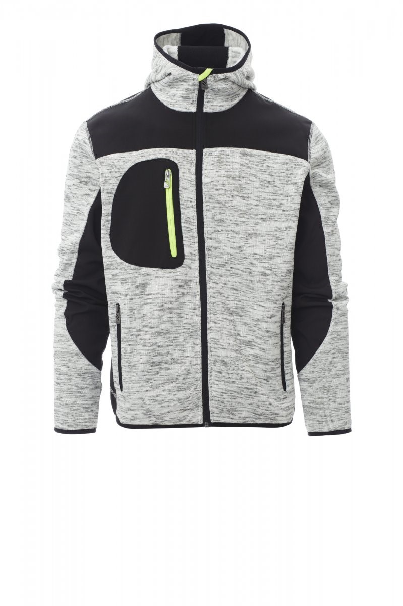 Pánská funkční bunda s dlouhým rukávem, zapínání na zip, kapuce, 3 kapsy na zip, kombinace pleteniny ze 100% polyester a softshellu, 300 gsm.