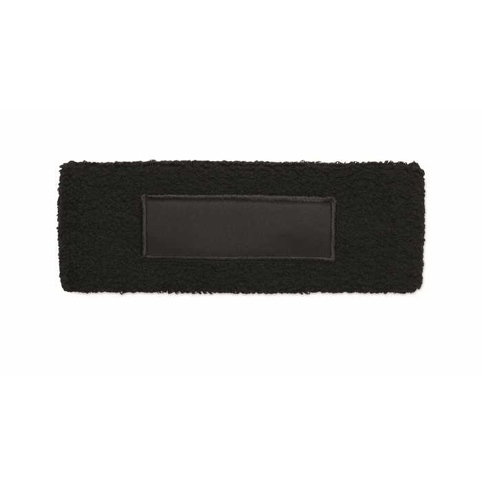 Čelenka/potítko z polybavlny (79% bavlna, 13 % elastan, 8 % polyester) s bavlněnou nášivkou pro potisk.Rozměry: 18,5 x 6cm