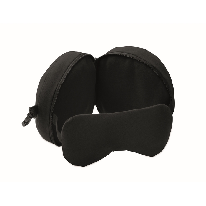 Cestovní polštářek 2v1 s připojenou maskou na oči. Rozměry: DIA14 x 10.5 cm