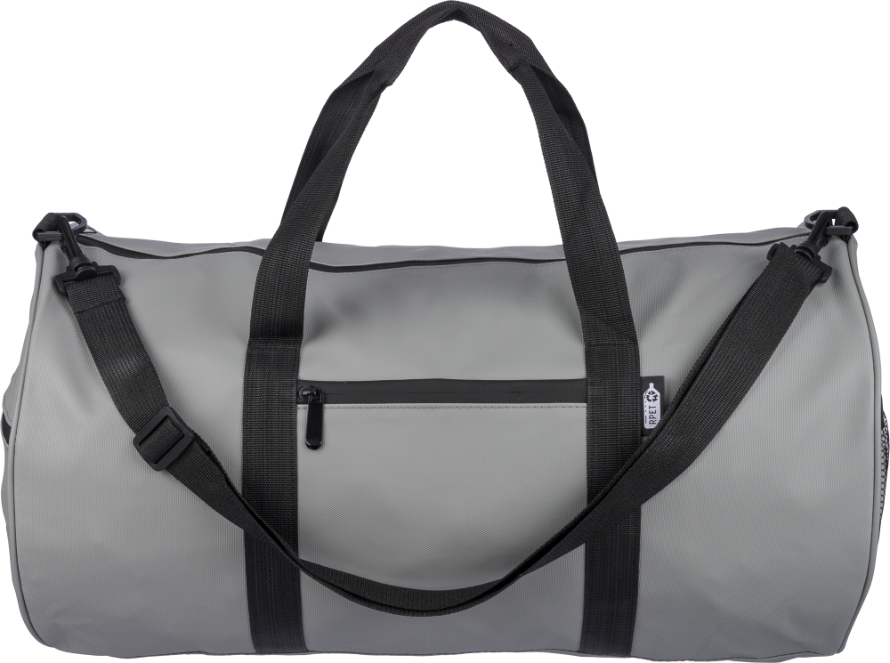 Cestovní taška z rPET polyesteru 600D s podšívkou 210D a vodoodpudivým PU zátěrem. Má hlavní přihrádku o objemu 40 l, přední a boční kapsy na zip, boční síťovanou kapsu, dvě rukojeti a nastavitelný ramenní popruh. Součástí je vnější štítek rPET. Rozměry: 28 cm x 51 cm