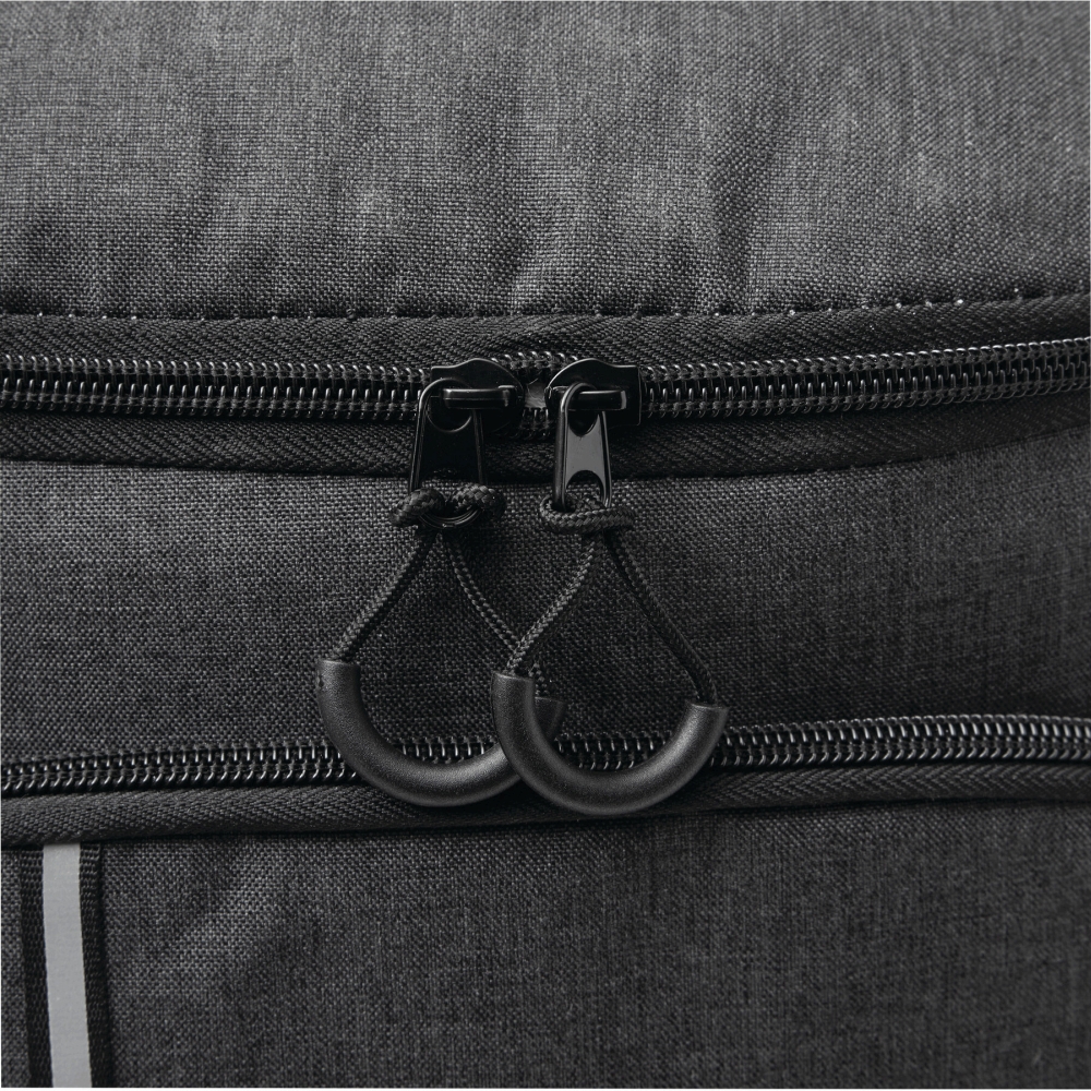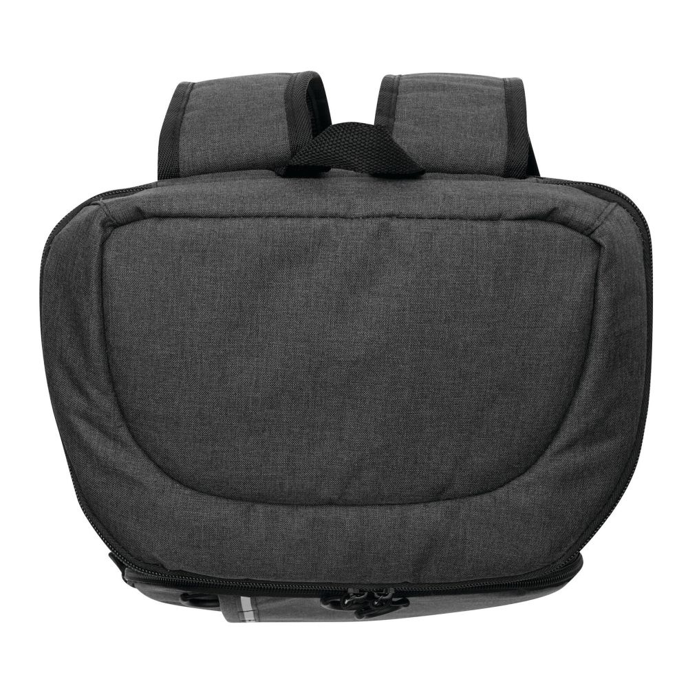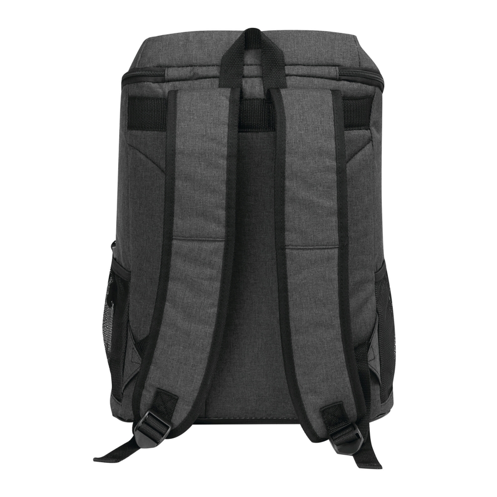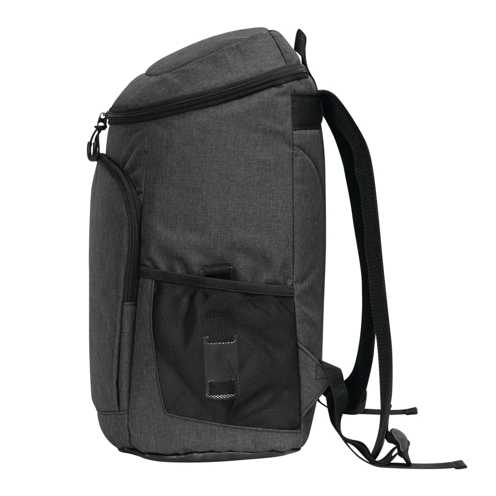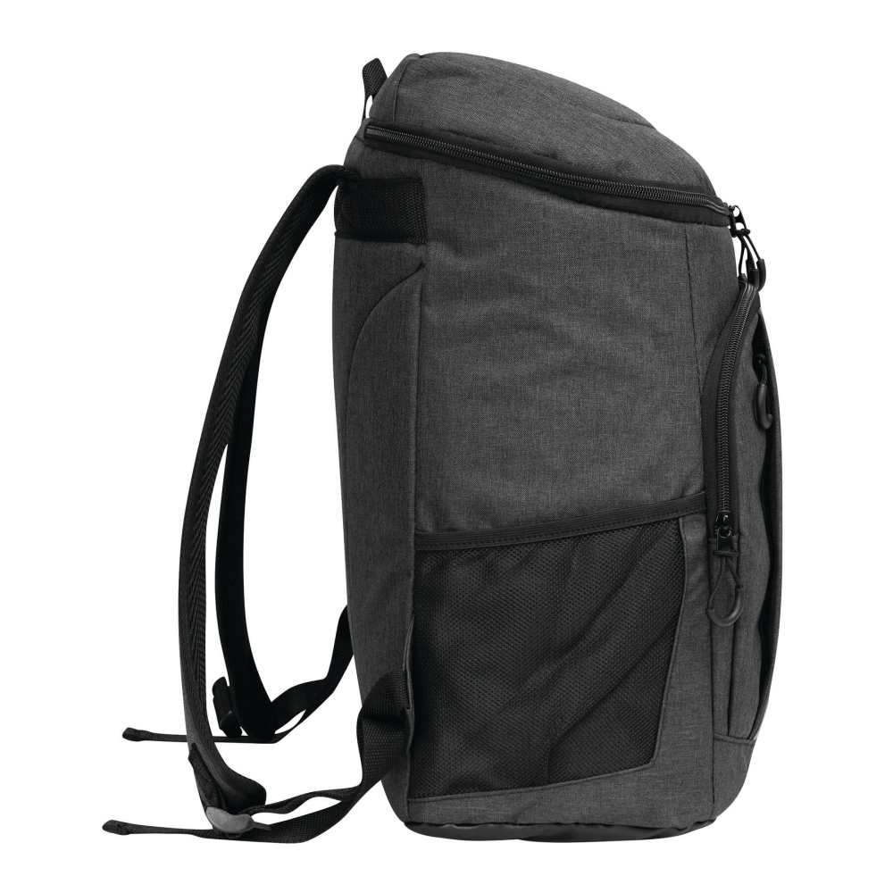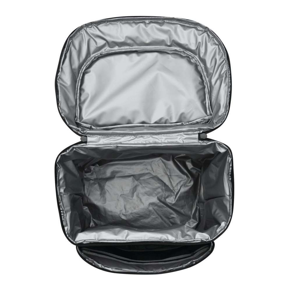 Chladicí batoh: 1 velká hlavní kapsa na zip s izolací a podšívkou z PEVA, 1 přední kapsa na zip se síťovanou přihrádkou, 1 svislá přední kapsa na zip a reflexní proužek, 2 boční síťované kapsy, 1 odnímatelný otvírák na lahve z nerezové oceli, vodoodpudivé dno, nastavitelné polstrované ramenní popruhy, madlo. Rozměry: 24 x 16 x 35-44 cm
