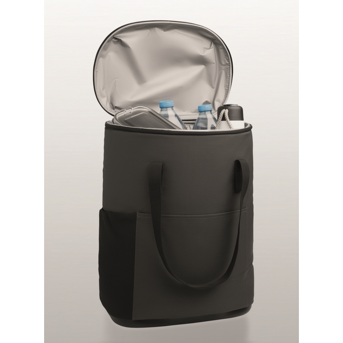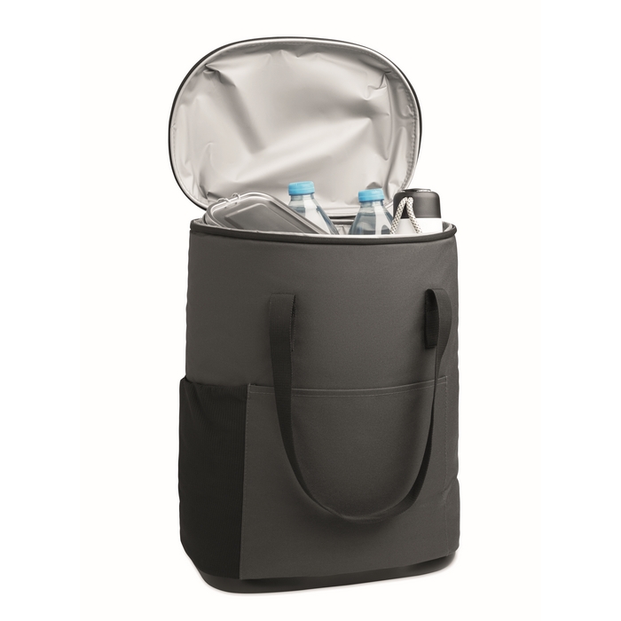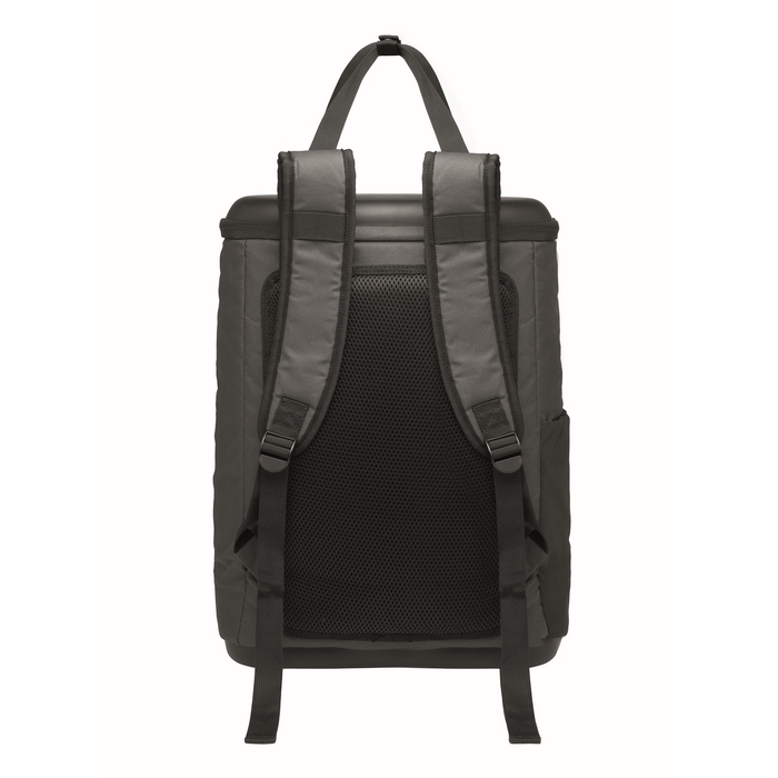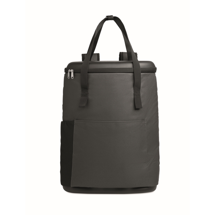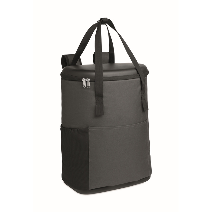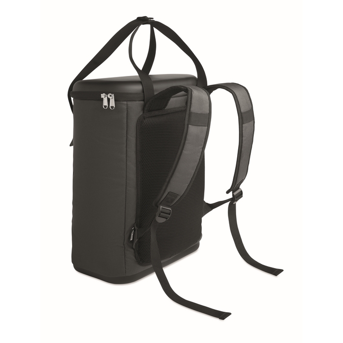 Chladicí batoh z voděodolného materiálu 600D RPET s izolací z pěnového PE a podšívkou PEVA. Má tvarované víko, polstrovaná síťovaná záda, přední kapsu na zip a boční síťované kapsy. Objem 20 l. Rozměry: 33 x 20 x 46 cm