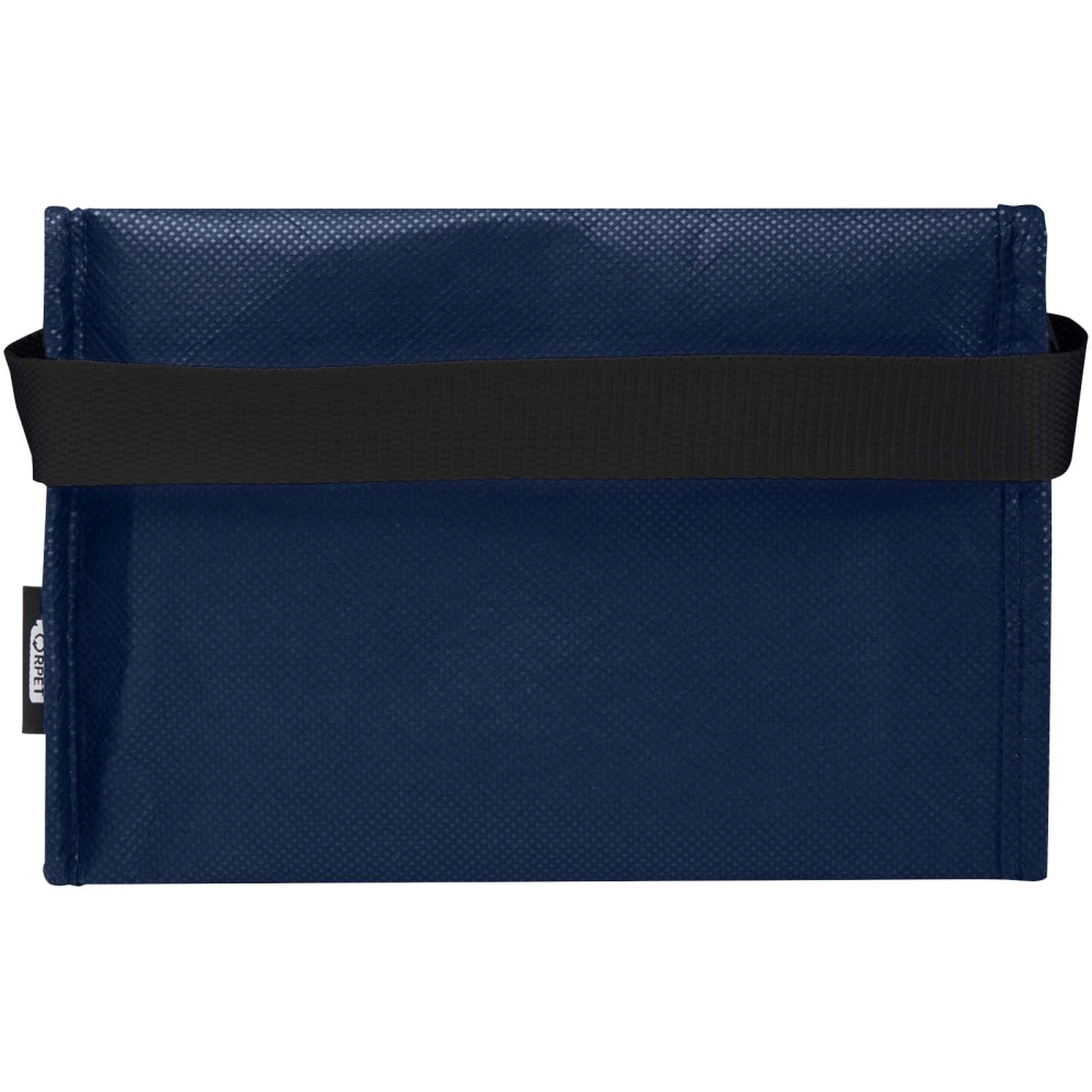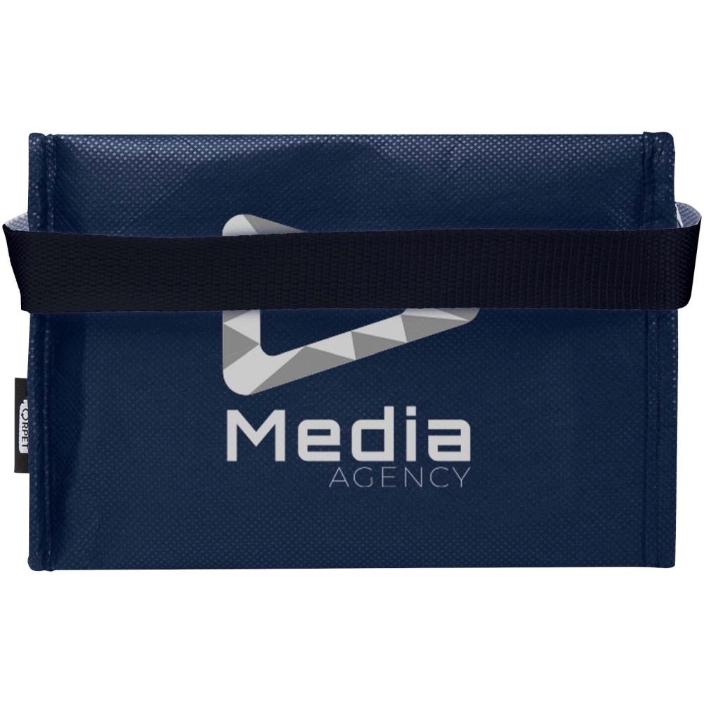 Recyklovaná chladicí taška na 6 plechovek vyrobená z odolného a netkaného RPET pojme až 6 plechovek a má popruhové ucho pro snadné přenášení. Objemová kapacita: 4 litrů. Rozměry: 20 x 16 x 13 cm