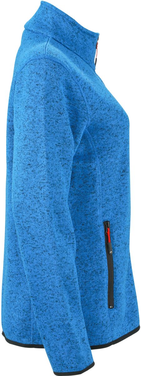 JAMES NICHOLSON KNIT FLEECE JACKET WOMEN. Dámská pletená melírovaná fleecová bunda se stojatým límcem. Bunda má dvě boční kapsy a jednu kapsu na rukávu se zipy. Spojovací švy jsou vyšity sv.jším odstínem. Materiál měkký hřejivý 100% polyester, 280g. Kartonové množství v ks: 30