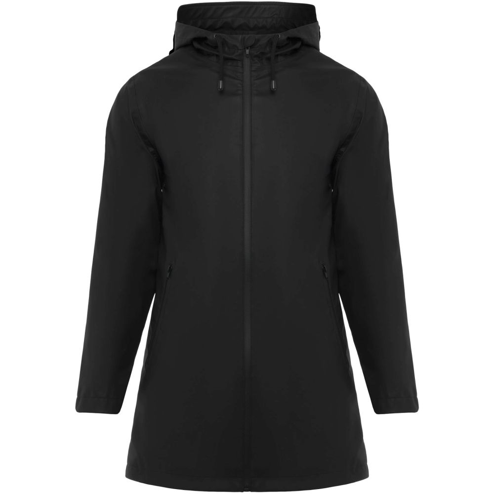 Nepromokavá pláštěnka. Kapuce s kšiltem. Zateplené zipy a švy. Kontrastní detaily v černé barvě. Dvě boční kapsy na zip. Rozparky na zadním lemu. Odnímatelný štítek. Nepromokavá. Modelka měří 185 cm a má na sobě velikost M.