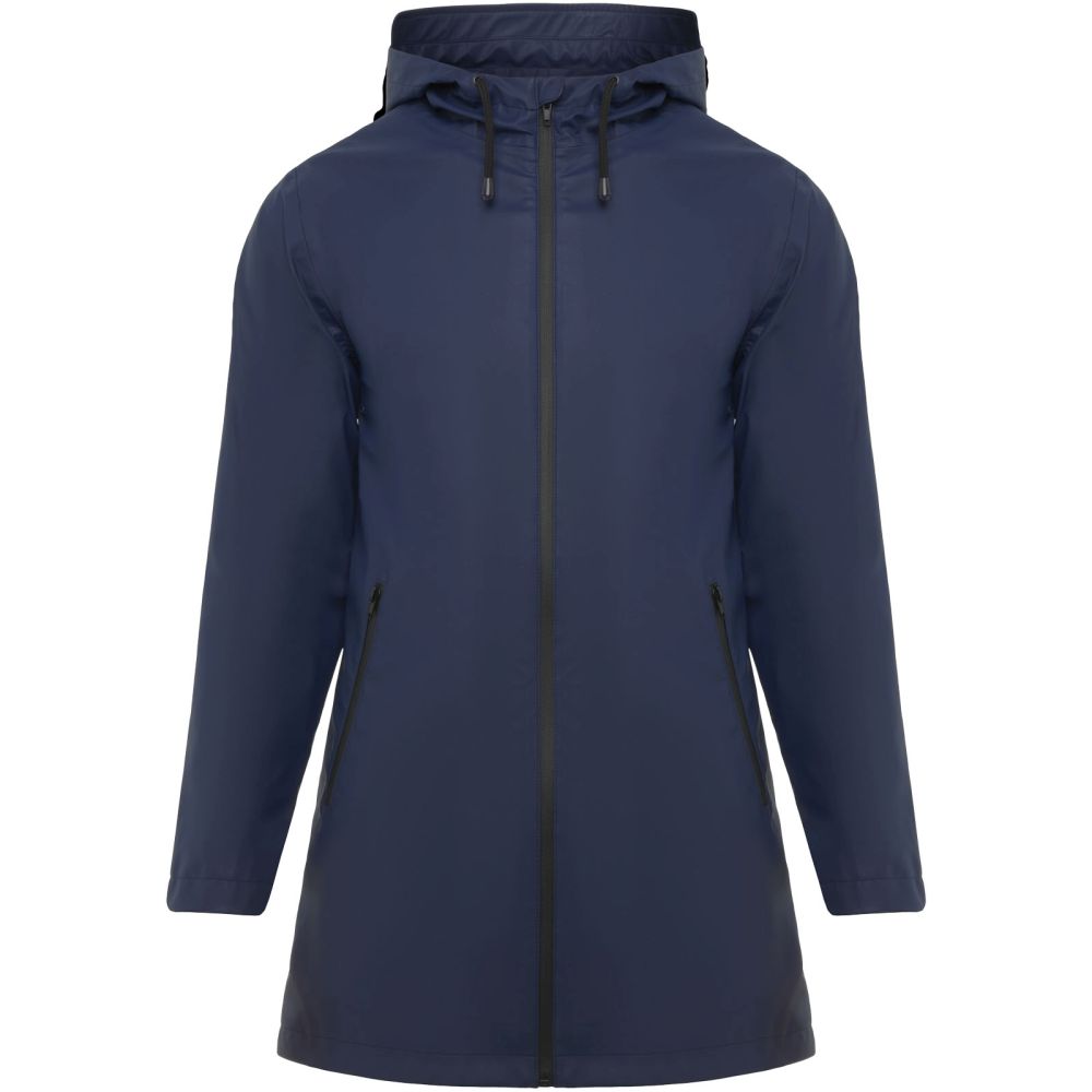 Nepromokavá pláštěnka. Kapuce s kšiltem. Zateplené zipy a švy. Kontrastní detaily v černé barvě. Dvě boční kapsy na zip. Rozparky na zadním lemu. Odnímatelný štítek. Nepromokavá. Modelka měří 185 cm a má na sobě velikost M.