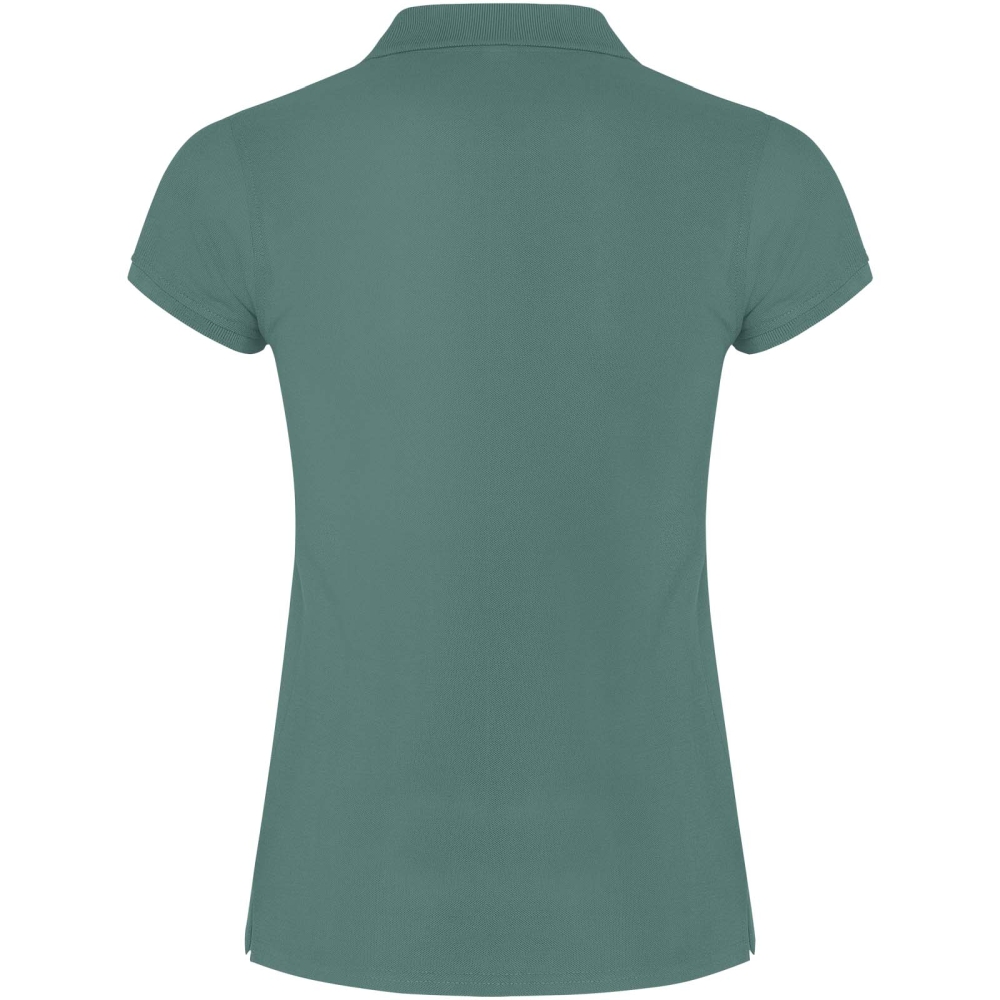 Dámské polo tričko s krátkým rukávem. Zesílené kryté švy ve vnitřním límci. Límec a manžety s žebrováním 1x1. Boční švy a vypasovaný střih. Úzké zapínání na 3 knoflíky. Boční rozparky. Odnímatelná etiketa.