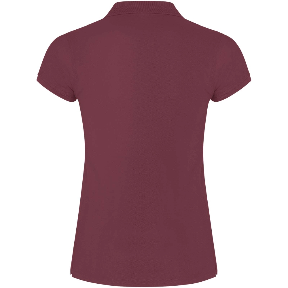 Dámské polo tričko s krátkým rukávem. Zesílené kryté švy ve vnitřním límci. Límec a manžety s žebrováním 1x1. Boční švy a vypasovaný střih. Úzké zapínání na 3 knoflíky. Boční rozparky. Odnímatelná etiketa.
