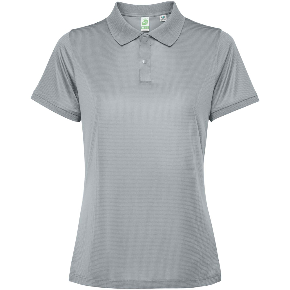Dámské vypasované polo tričko s krátkým rukávem. Zesílené kryté švy ve vnitřním límci. 1×1 žebrované manžety a límeček. Boční švy. Zapínání na 3 knoflíky a boční rozparky.