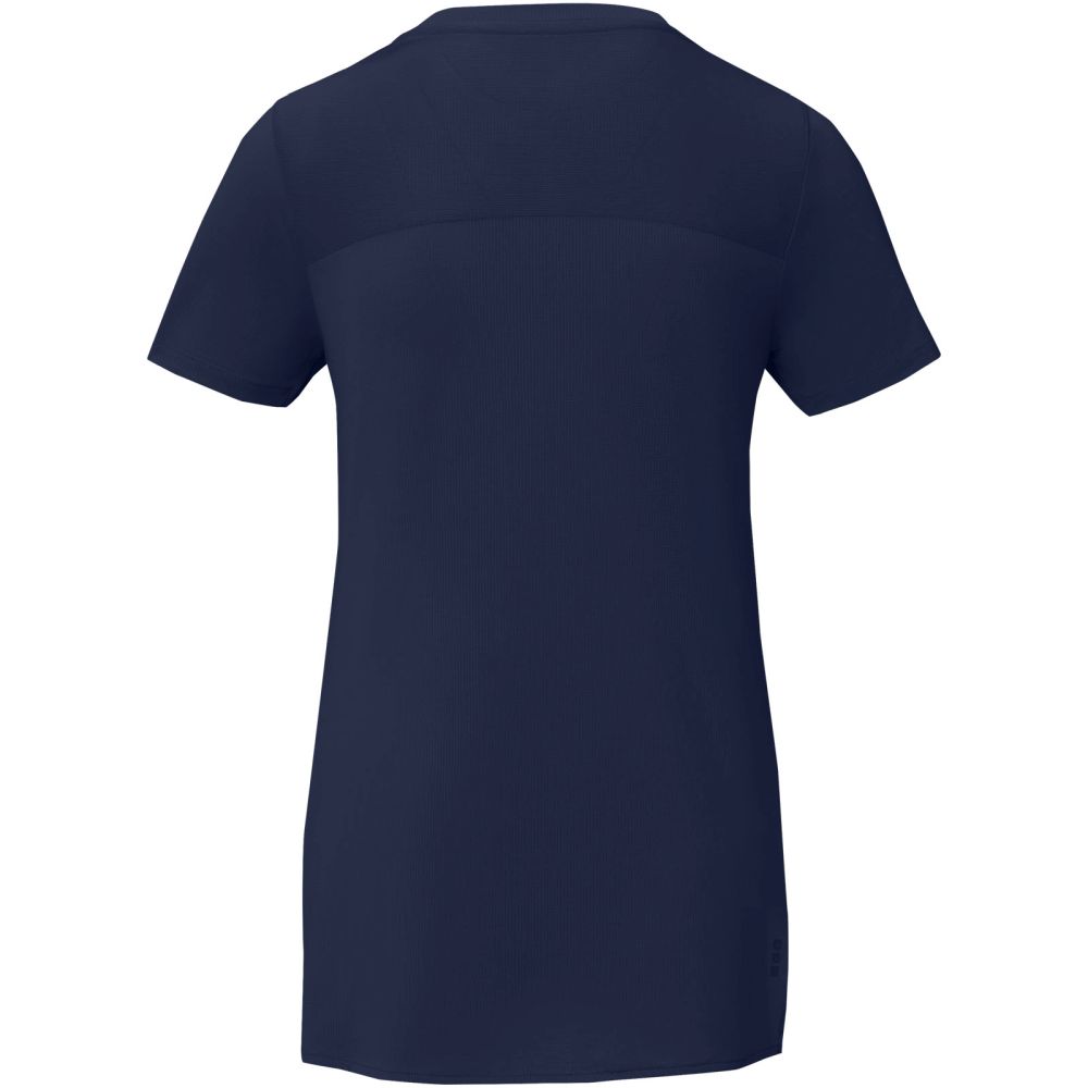 Dámské funkční tričko s krátkým rukávem, značka Elevate. Tričko má kulatý výstřih s detailem ve tvaru V, límec ve shodné tkanině, boční rozparky, prodloužený zadní díl. Tato položka byla vyvinuta ve spolupráci se společností Waste2Wear. Síťovina s úpravou Cool Fit 90% GRS certifikovaný recyklovaný polyester, 10% Elastan, 160 g/m2.