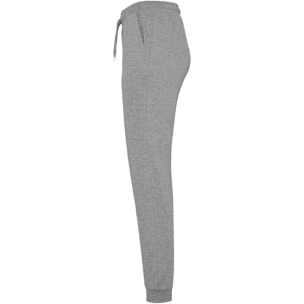 Sportovní kalhoty se širokým nastavitelným pasem, stahovací šňůrkou, přiléhavými kotníkovými manžetami, zesílenými švy, žebrovanými bočními kapsami a zadní rohovou kapsou s prošitým průhledem. Odnímatelný štítek.