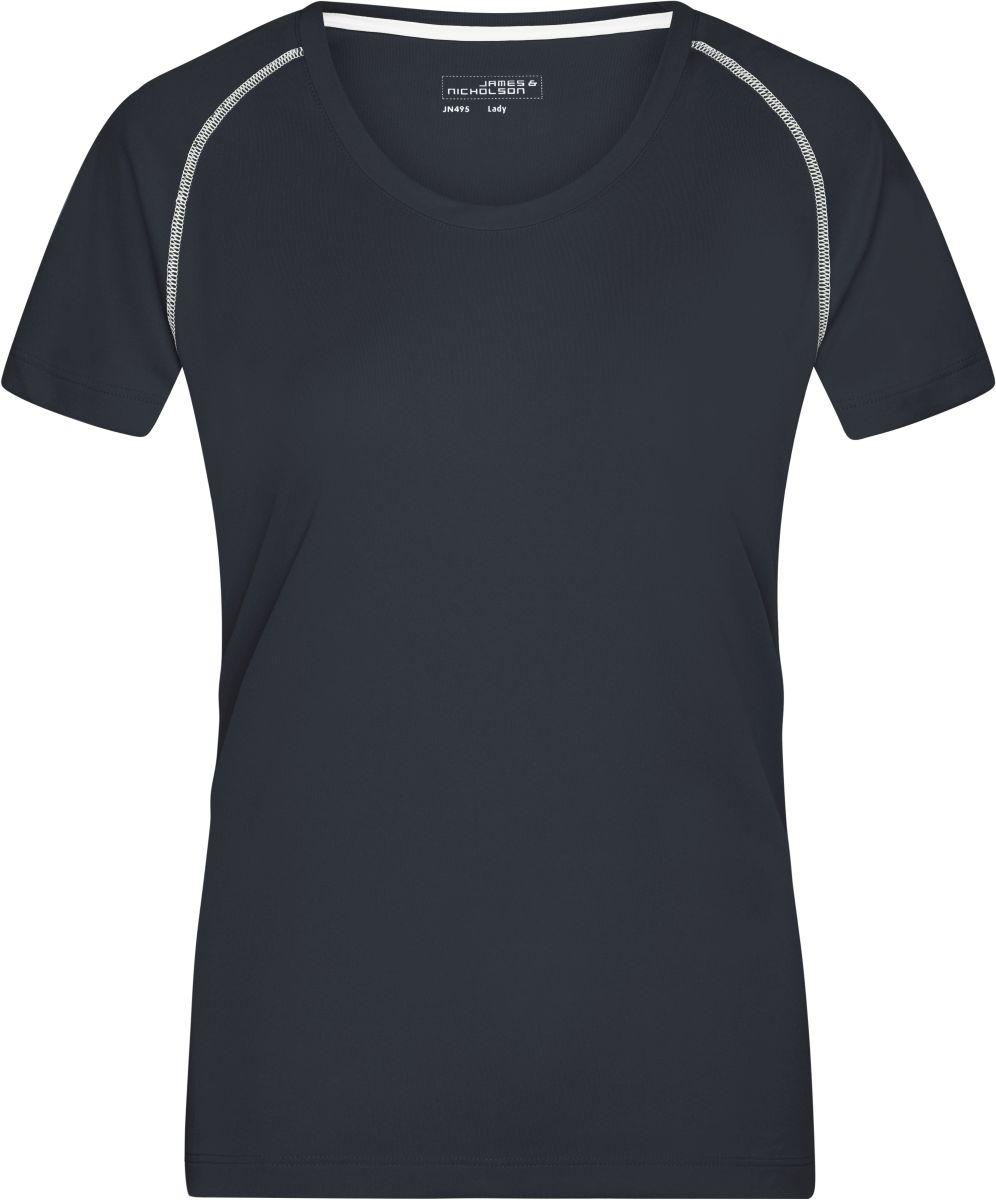 JAMES & NICHOLSON SPORTS T-SHIRT WOMEN. Dámské sportovní tričko s krátkými raglánovými rukávy a kulatým výstřihem uplým u krku, lehce vypasovaný střih. Kolem ramen jsou ploché kontrastní švy. Materiál reguluje vlhkost a je rychleschnoucí. Vyrobeno ze 100% polyesteru, 130g. Kartonové množství v ks: 50