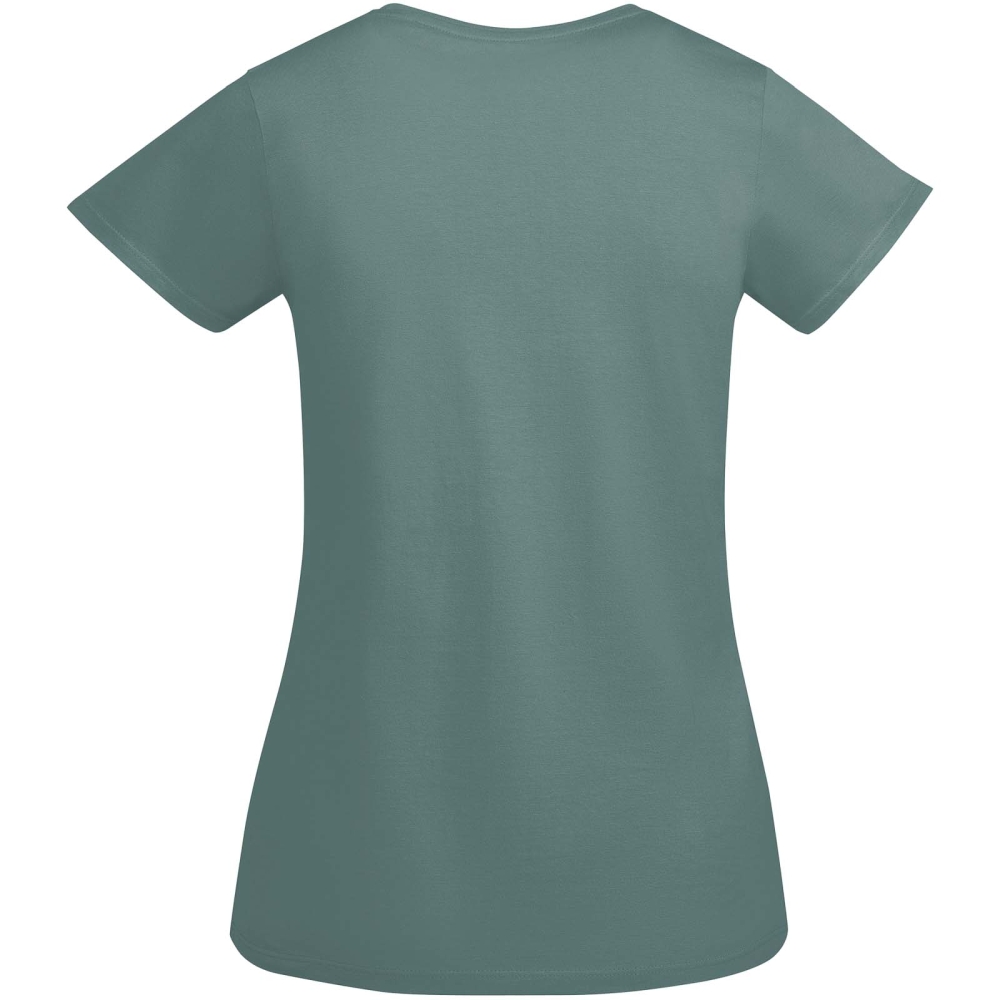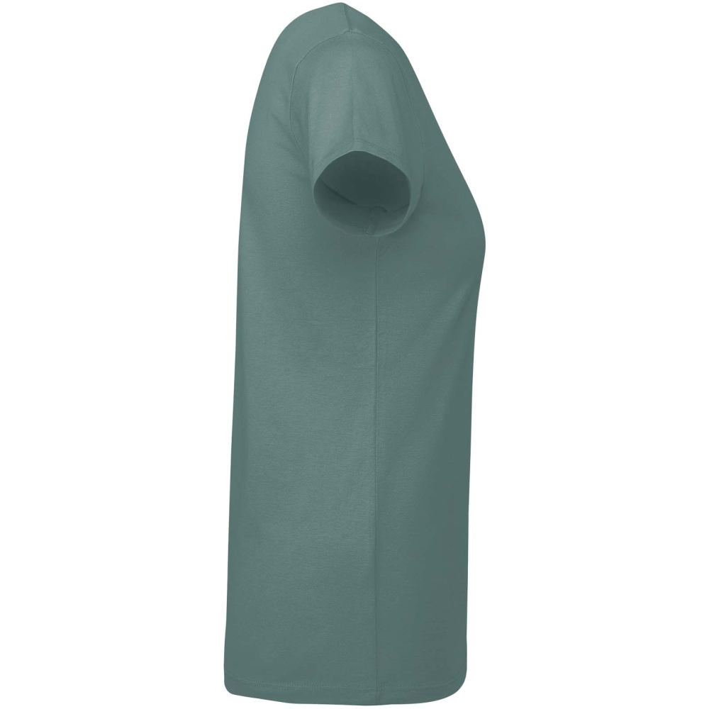 Přiléhavé dámské tričko z bio bavlny. Žebrovaný výstřih ke krku. Zesílené skryté švy v límci. Sundávací štítek.