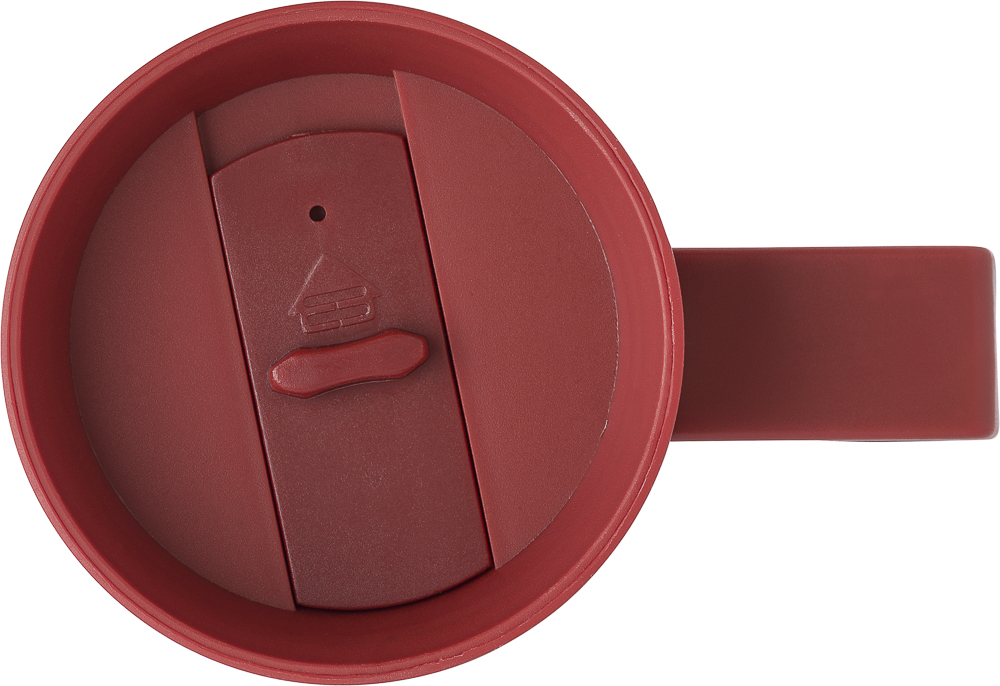 Nerezový cestovní hrnek s plastovým uchem a víčkem, objem 400 ml. Doporučená technologie tisku: laser. Rozměry: O 8,2 x 18 cm.