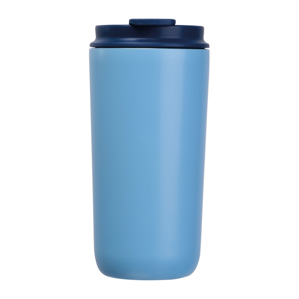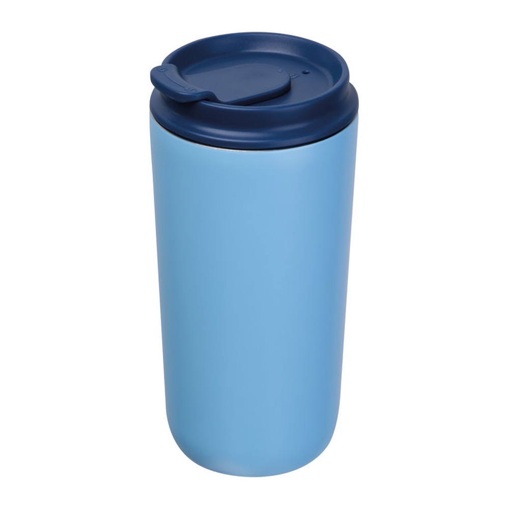 Sada Ferraghini s poznámkovým blokem (A5, 192 linkovaných stran, 96 listů, 100 g/m2, recyklovaný papír, PU obal, záložka, gumička), 500 ml cestovním hrnkem z nrezové oceli (nepropustným) a kvalitním hliníkovým perem s otočným mechanismem a s modrou náplní. Rozměry: 36 x 25 x 9 cm