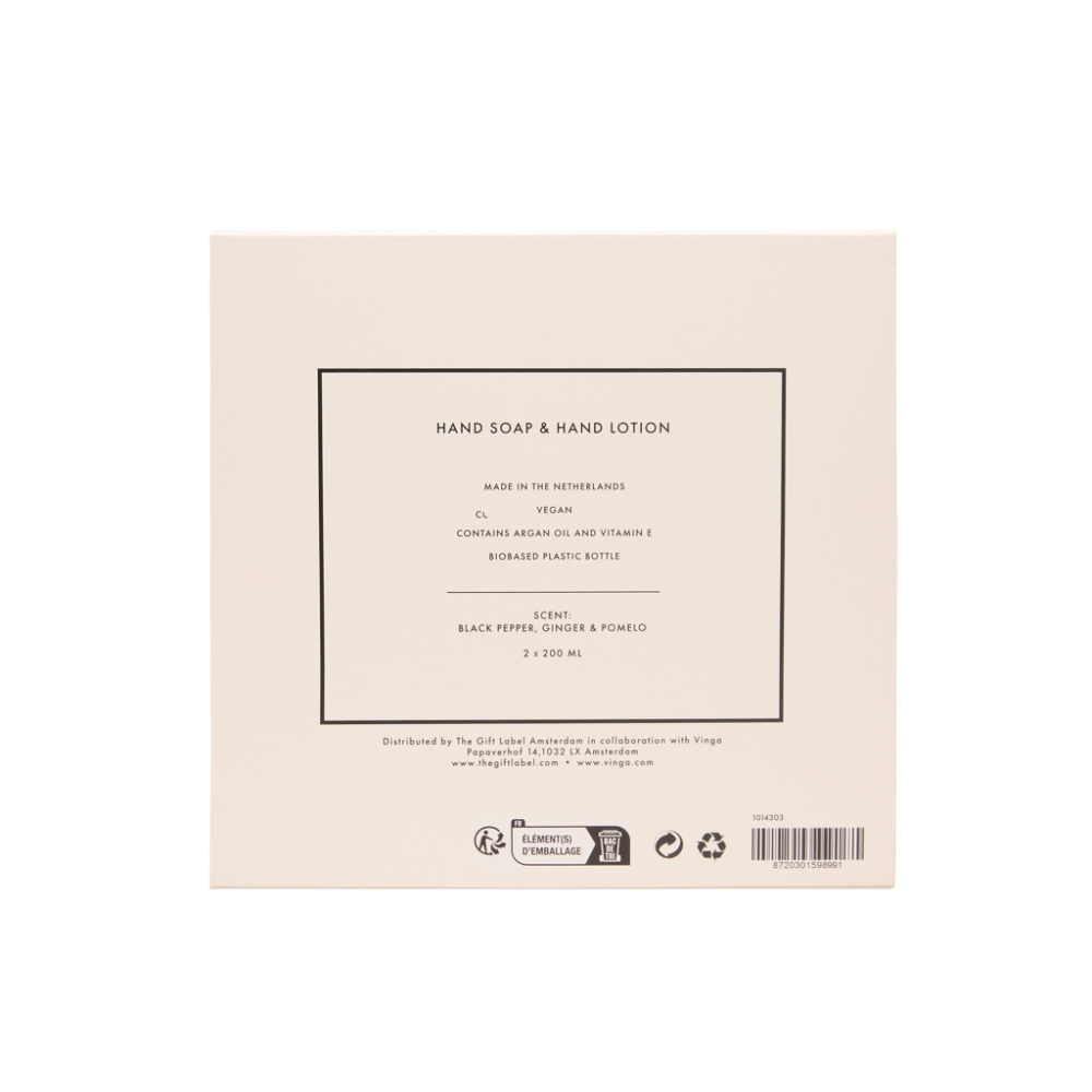 Hedvábně hebké ruce každý den. Pečujte o své ruce s touto elegantní vonnou sadou obsahující dvě 200ml lahvičky – tekuté mýdlo na ruce a krém na ruce. S teplou a svěží vůní černého pepře, zázvoru a pomela zanechá vaše ruce jemné, vyživené a decentně provoněné – dotek, na který se nezapomíná. Stylově zabaleno v dárkové krabičce v krémově bílé a černé barvě.Rozměry: 18 x 8 x 18 cm