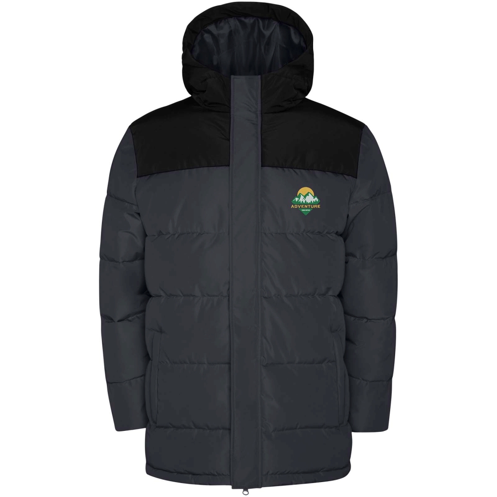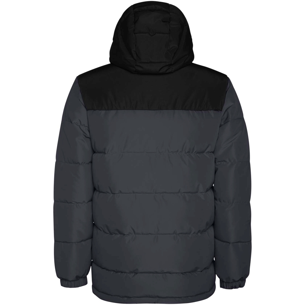 Polstrovaná bunda s kapucí. Přední zip krytý légou. Chránič brady. Dvě boční kapsy na zip. Elastické manžety.