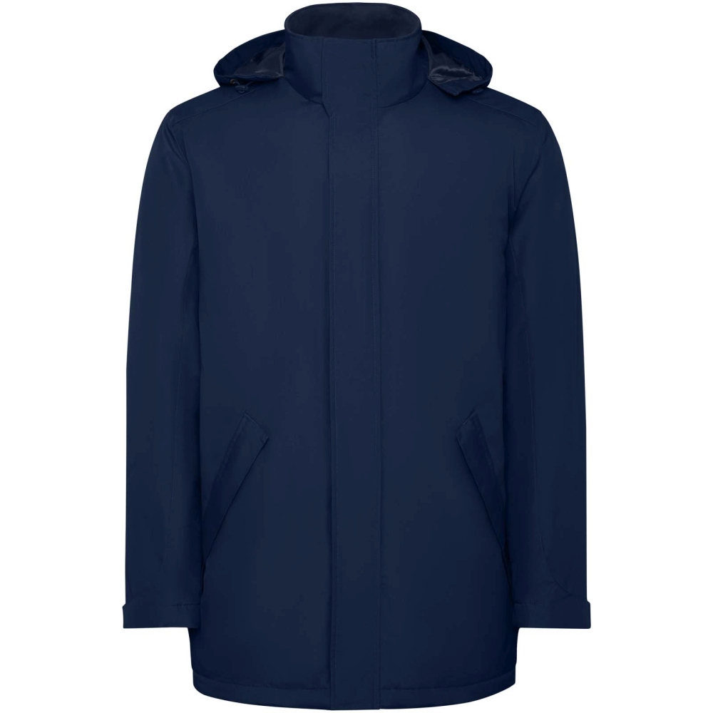 Nepromokavá zateplená parka pro děti. Vysoký límec a zapínání na suchý zip. Praktická skládací kapuce. Centrální zip ladící s klopou. Boční kapsy se zipem a pevnou klopou. Vnitřní kapsa se zapínáním na suchý zip. Nastavitelné manžety s poutkem na opasek. Možnost přístupu k výztuhám na zádech a levé části hrudi.